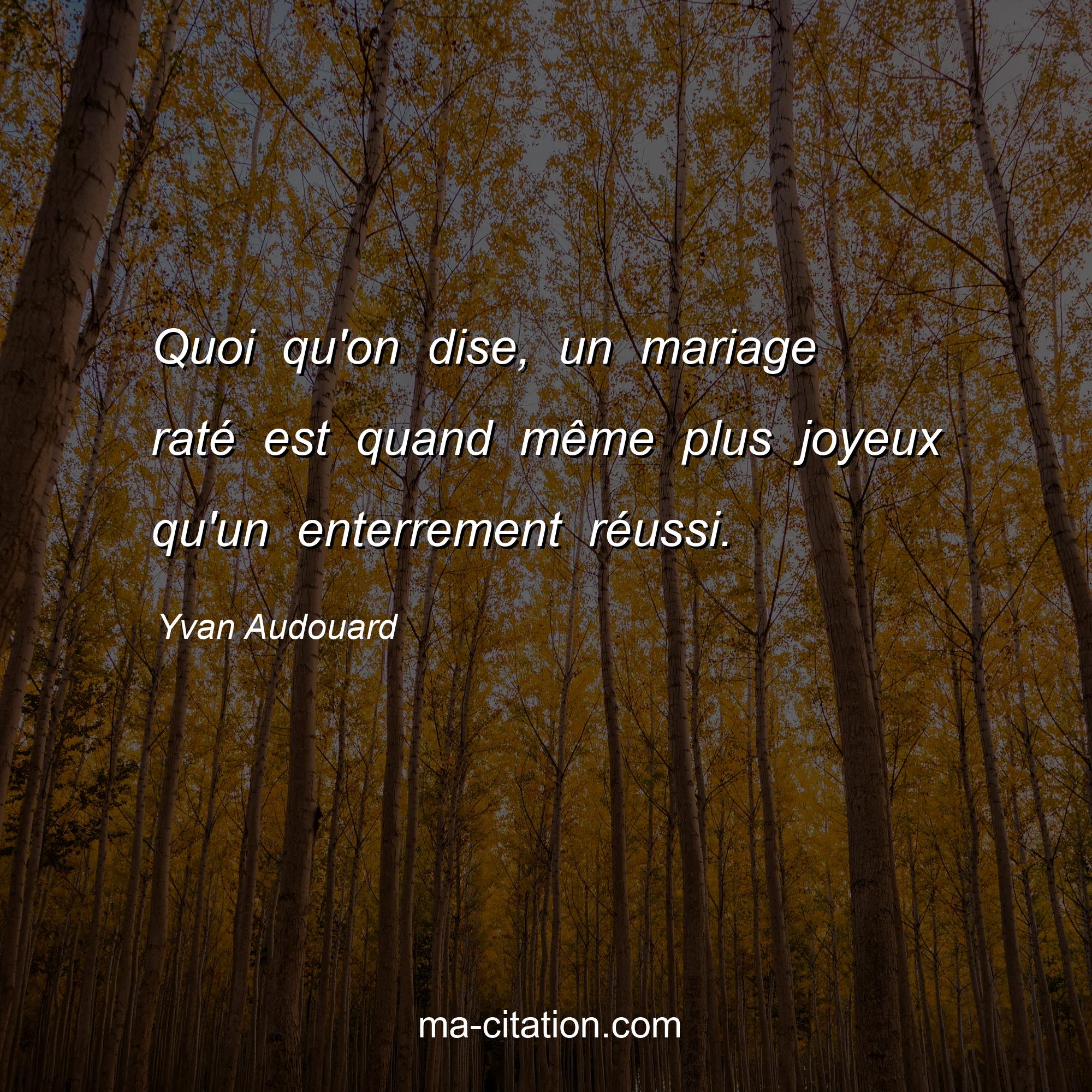 Citation sur la vie de Yvan Audouard :Quoi qu'on dise, un mariage raté est quand même plus joyeux qu'un enterrement réussi.