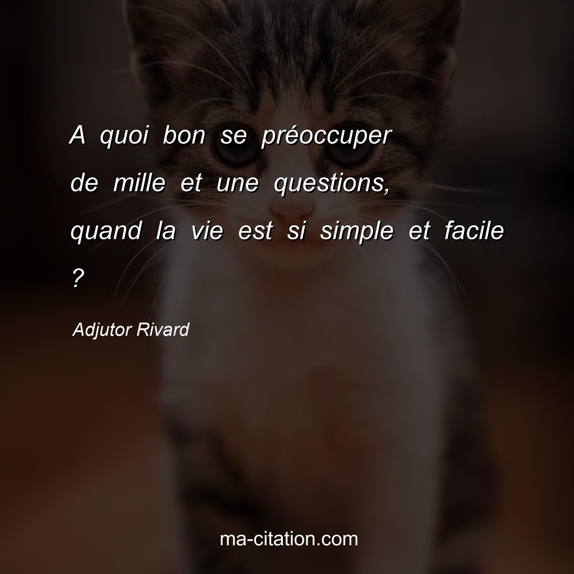 Adjutor Rivard est l'auteur de la citation sur la vie "A quoi bon se préoccuper de mille et une questions, quand la vie est si simple et facile ?".