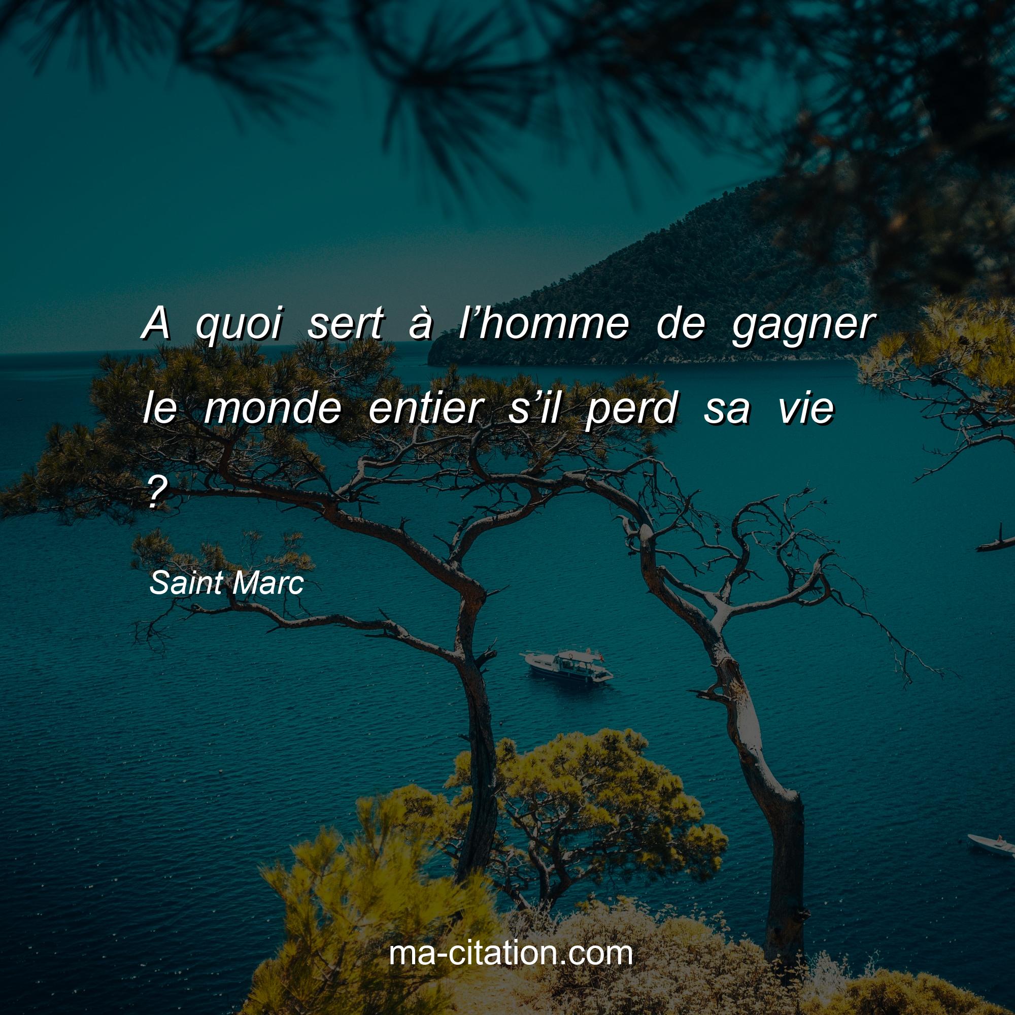 Saint Marc est l'auteur de la citation sur la vie "A quoi sert à l’homme de gagner le monde entier s’il perd sa vie ?".