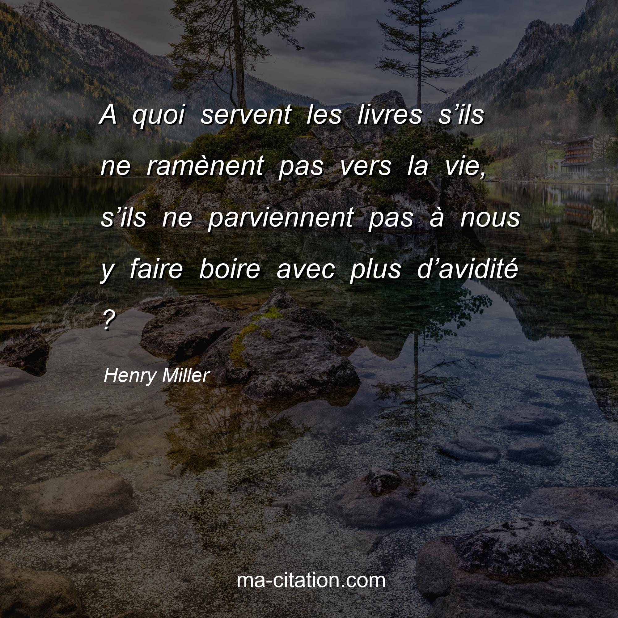 Citation sur la vie de Henry Miller :A quoi servent les livres s’ils ne ramènent pas vers la vie, s’ils ne parviennent pas à nous y faire boire avec plus d’avidité ?