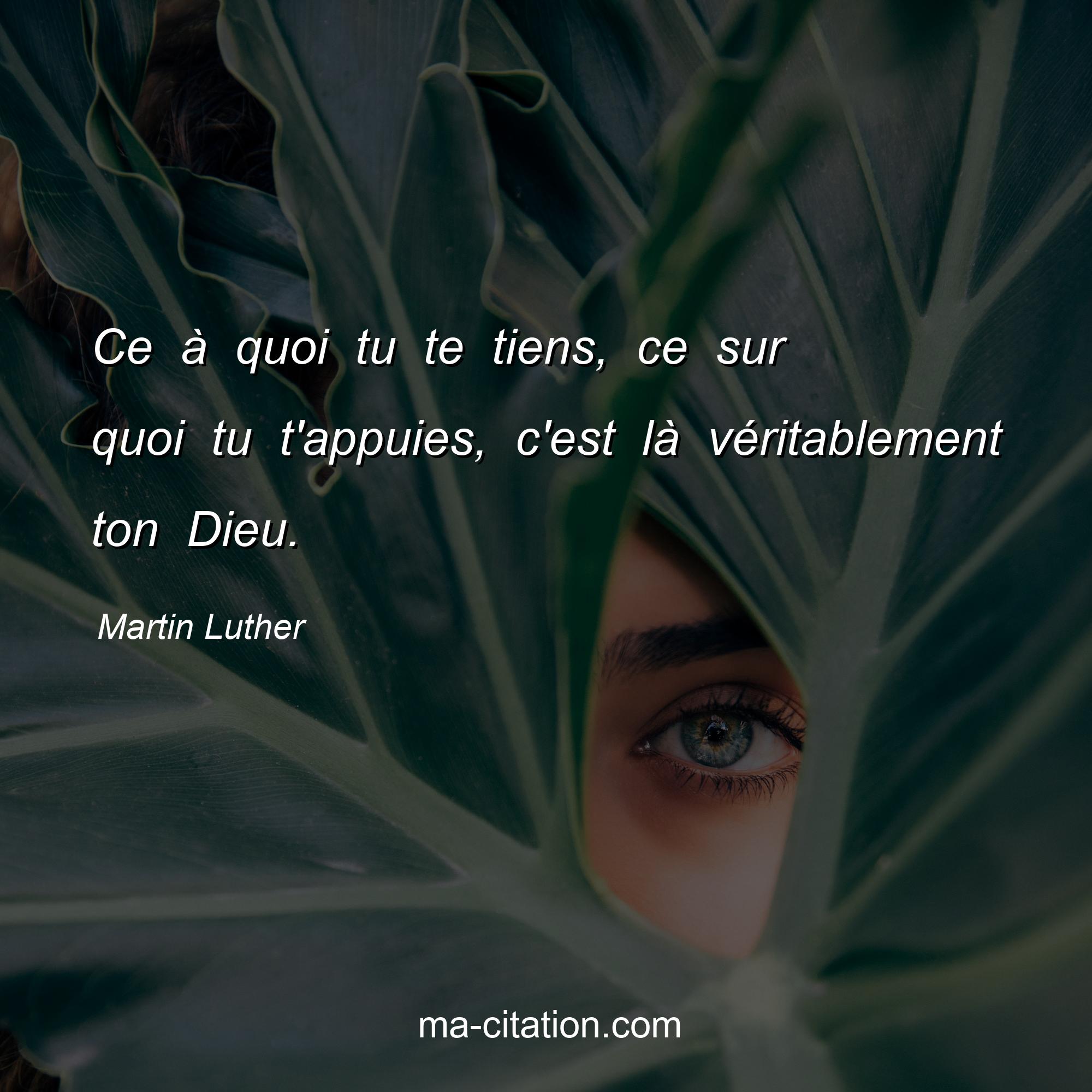 Citation sur la vie de Martin Luther :Ce à quoi tu te tiens, ce sur quoi tu t'appuies, c'est là véritablement ton Dieu.