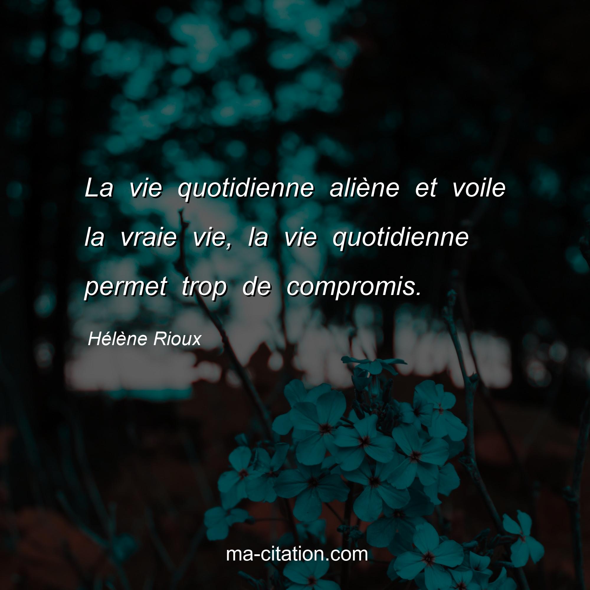 Hélène Rioux est l'auteur de la citation sur la vie "La vie quotidienne aliène et voile la vraie vie, la vie quotidienne permet trop de compromis.".