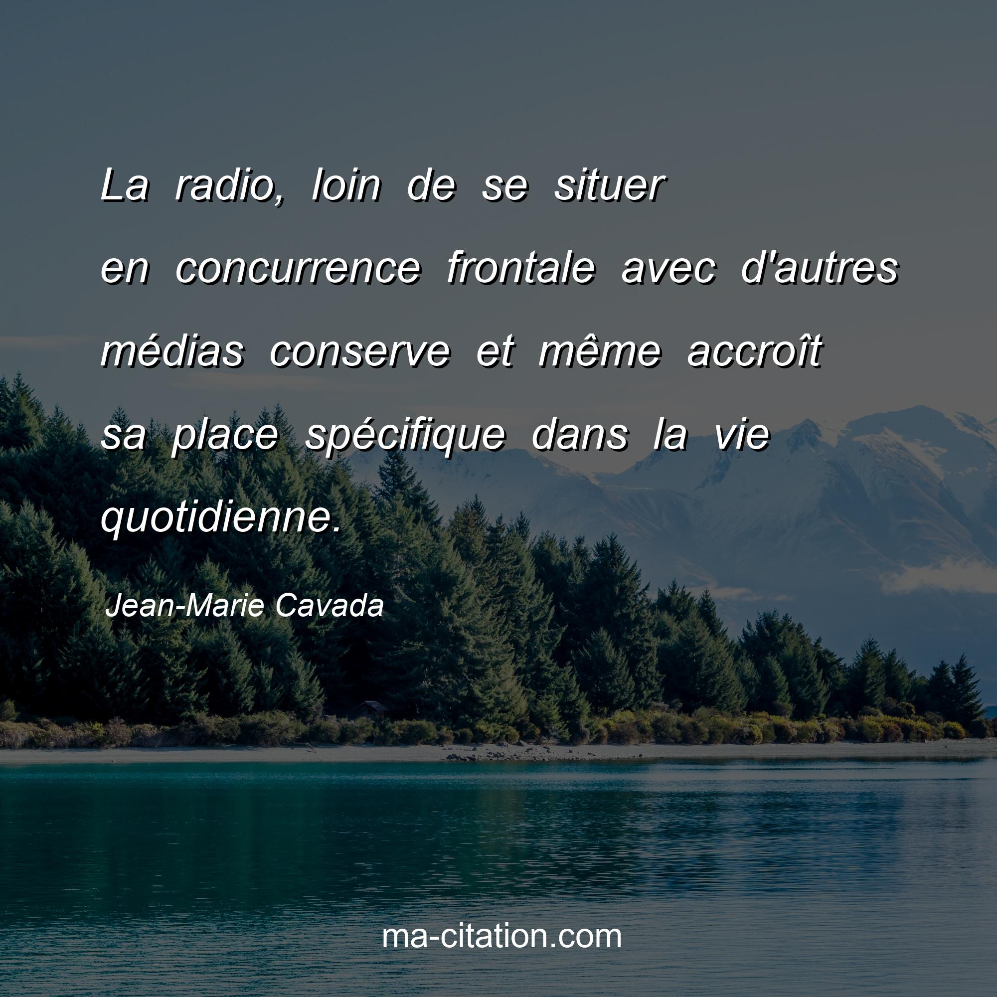 Citation sur la vie de Jean-Marie Cavada :La radio, loin de se situer en concurrence frontale avec d'autres médias conserve et même accroît sa place spécifique dans la vie quotidienne.