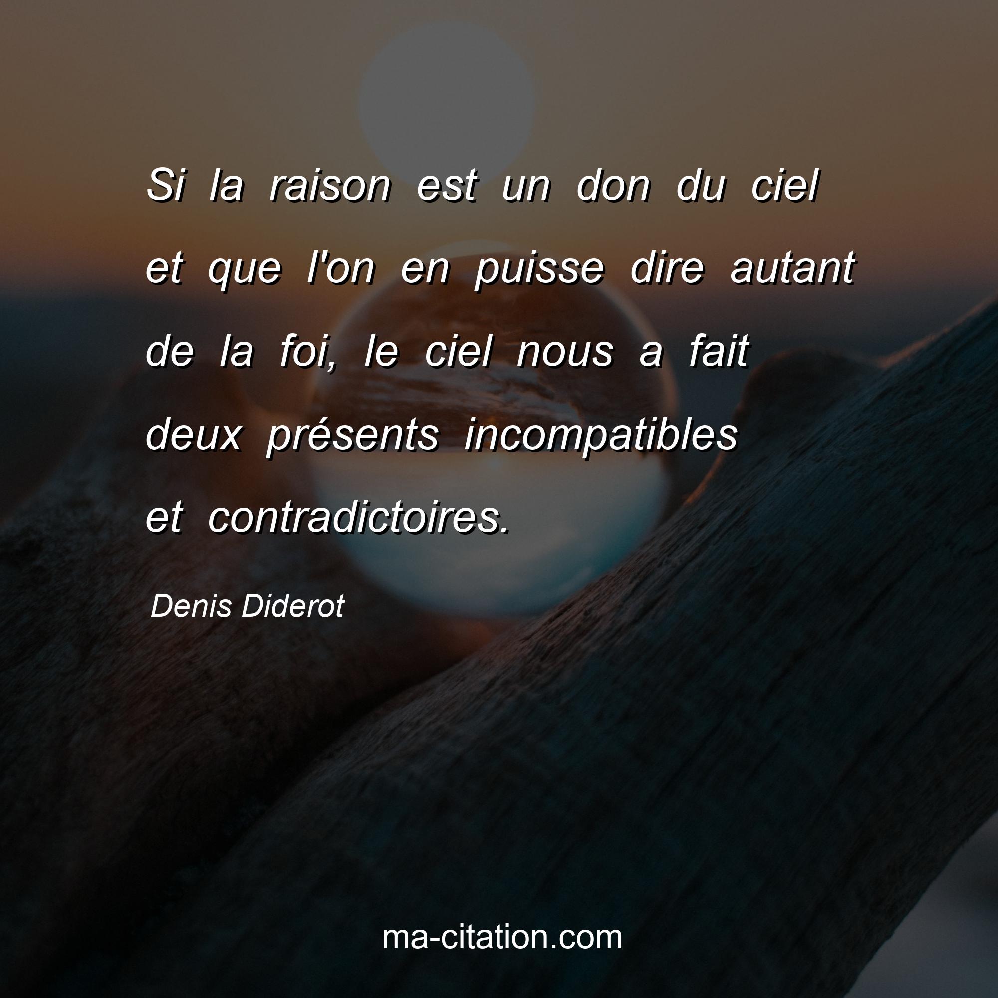 Citation sur la vie de Denis Diderot :Si la raison est un don du ciel et que l'on en puisse dire autant de la foi, le ciel nous a fait deux présents incompatibles et contradictoires.