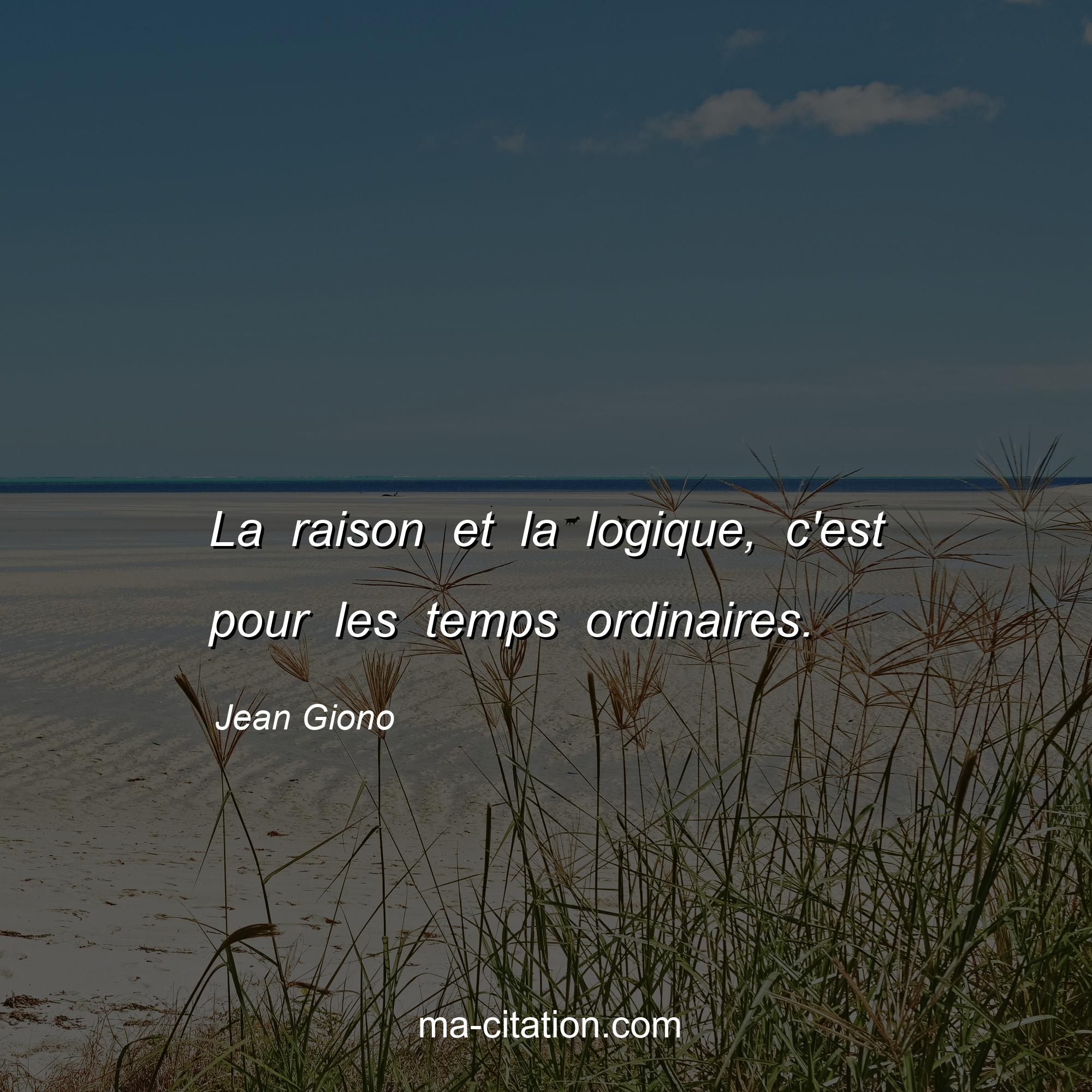 Citation sur la vie de Jean Giono :La raison et la logique, c'est pour les temps ordinaires.