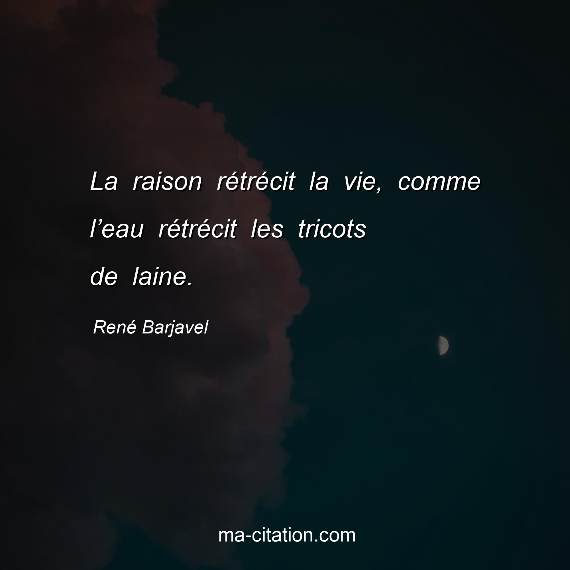 Citation sur la vie de René Barjavel :La raison rétrécit la vie, comme l’eau rétrécit les tricots de laine.