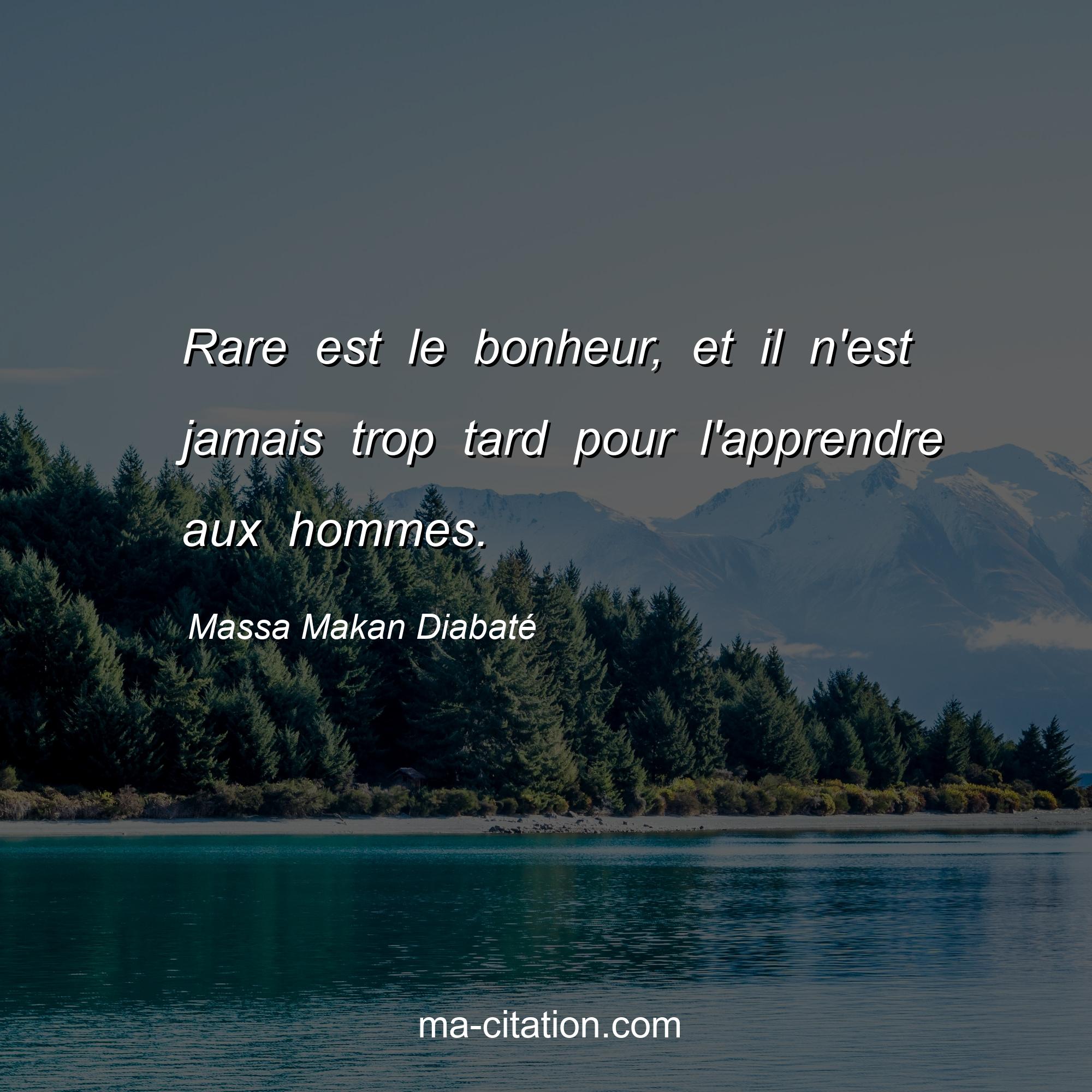 Massa Makan Diabaté est l'auteur de la citation sur la vie "Rare est le bonheur, et il n'est jamais trop tard pour l'apprendre aux hommes.".