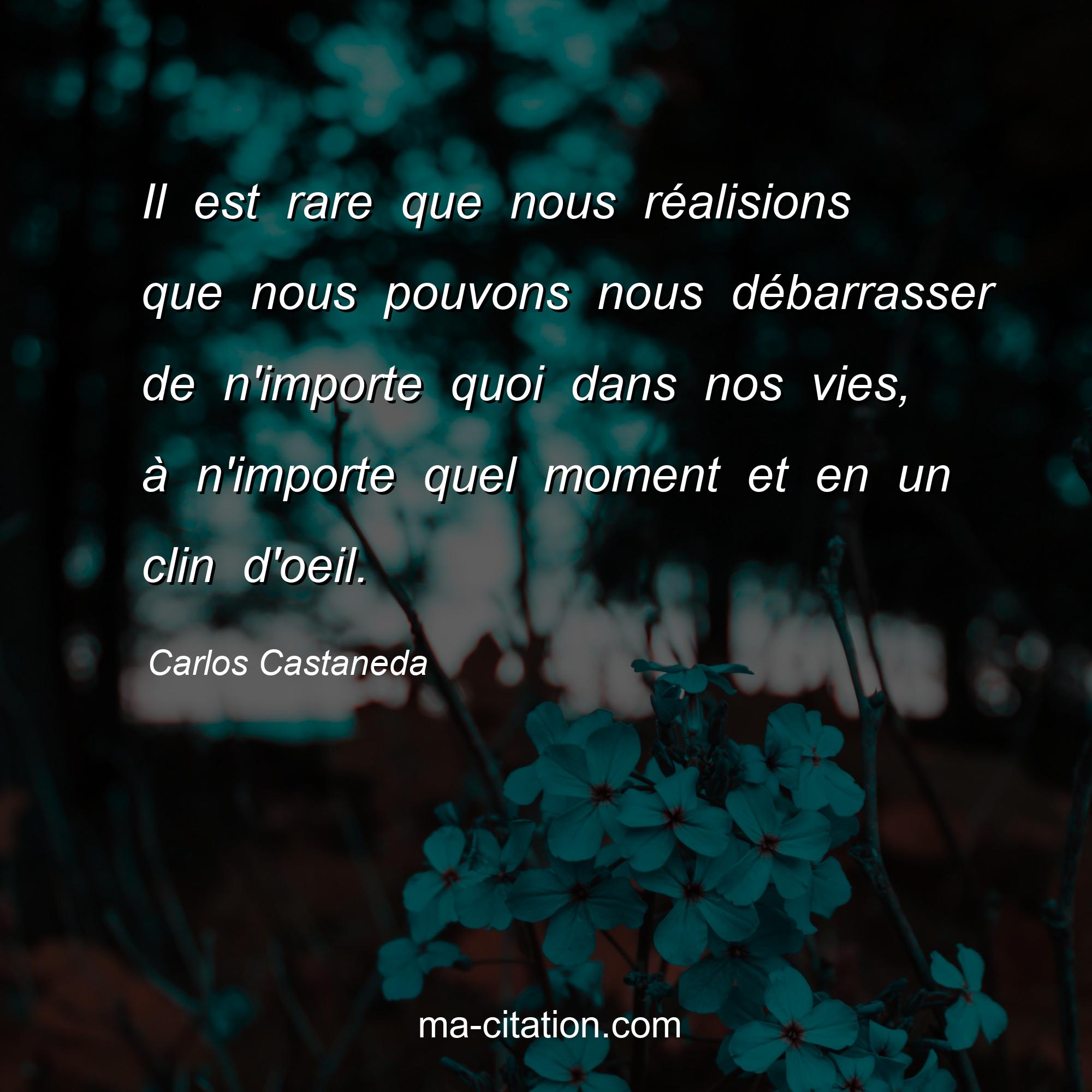 Citation sur la vie de Carlos Castaneda :Il est rare que nous réalisions que nous pouvons nous débarrasser de n'importe quoi dans nos vies, à n'importe quel moment et en un clin d'oeil.