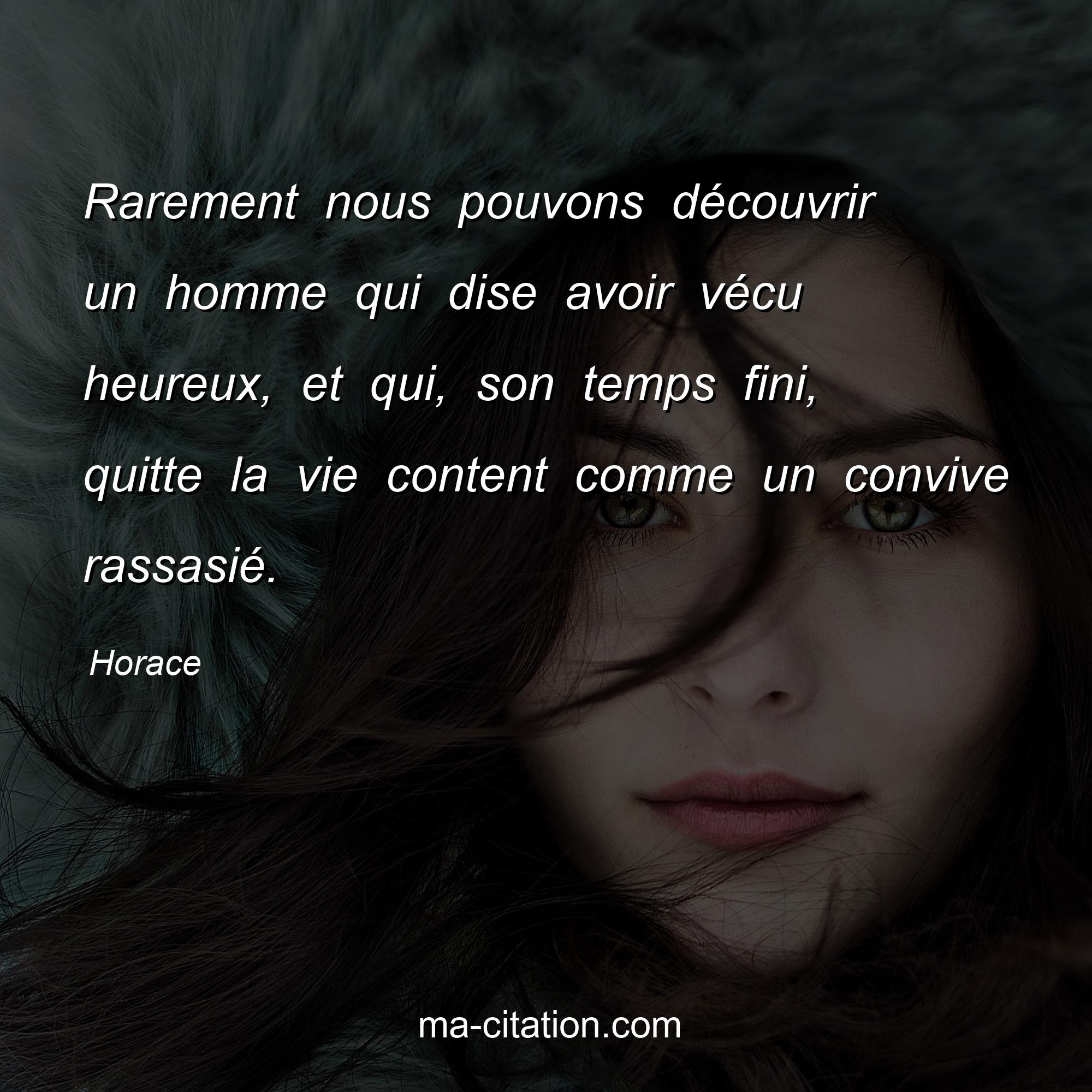 Citation sur la vie de Horace :Rarement nous pouvons découvrir un homme qui dise avoir vécu heureux, et qui, son temps fini, quitte la vie content comme un convive rassasié.