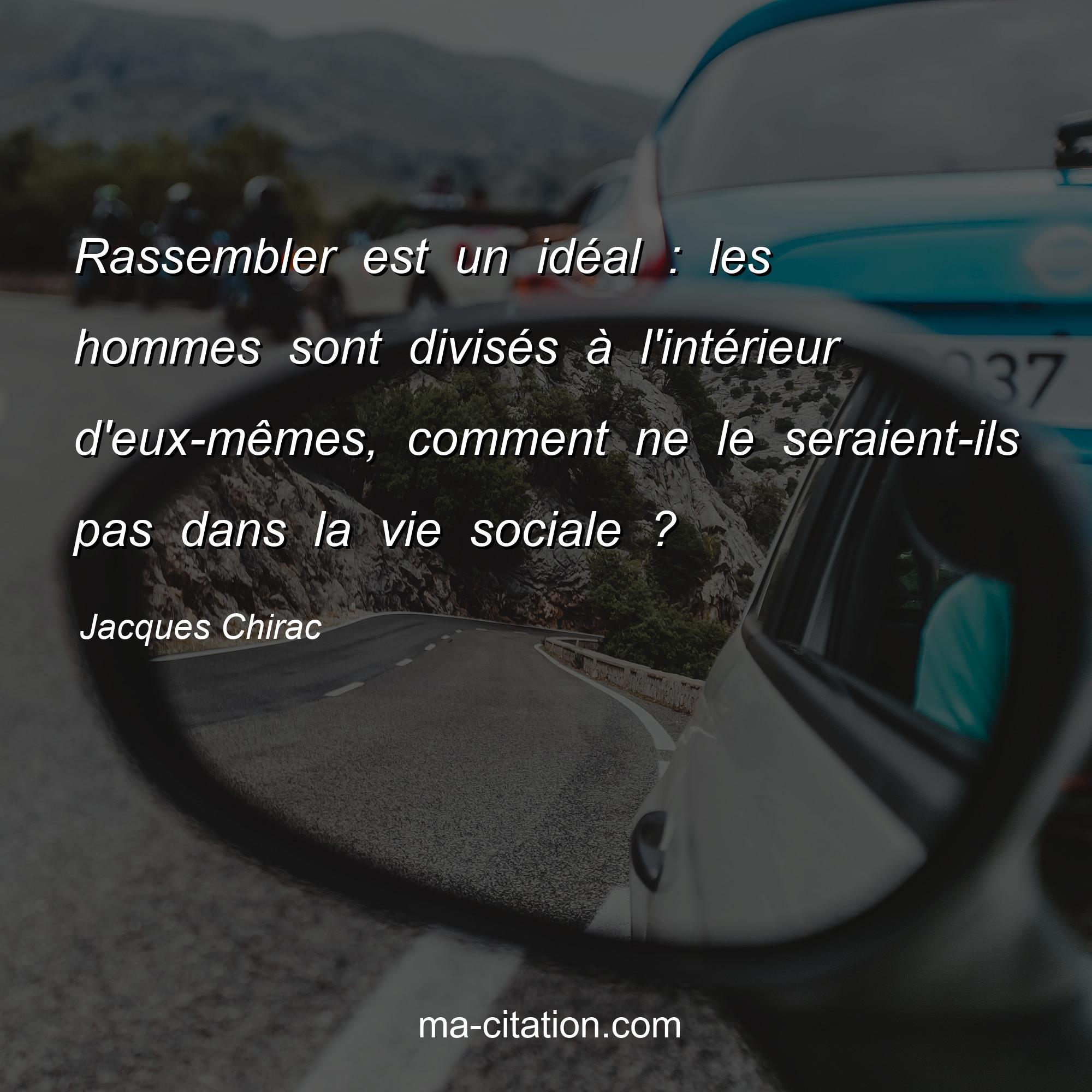 Citation sur la vie de Jacques Chirac :Rassembler est un idéal : les hommes sont divisés à l'intérieur d'eux-mêmes, comment ne le seraient-ils pas dans la vie sociale ?