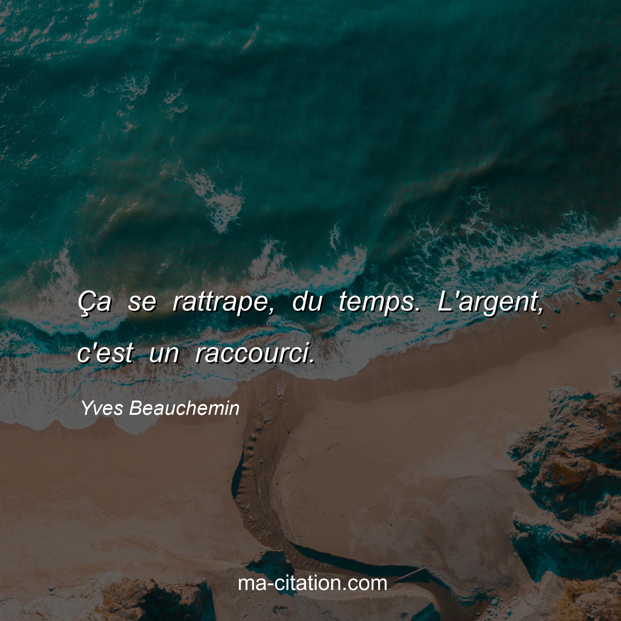 Citation sur la vie de Yves Beauchemin :Ça se rattrape, du temps. L'argent, c'est un raccourci.