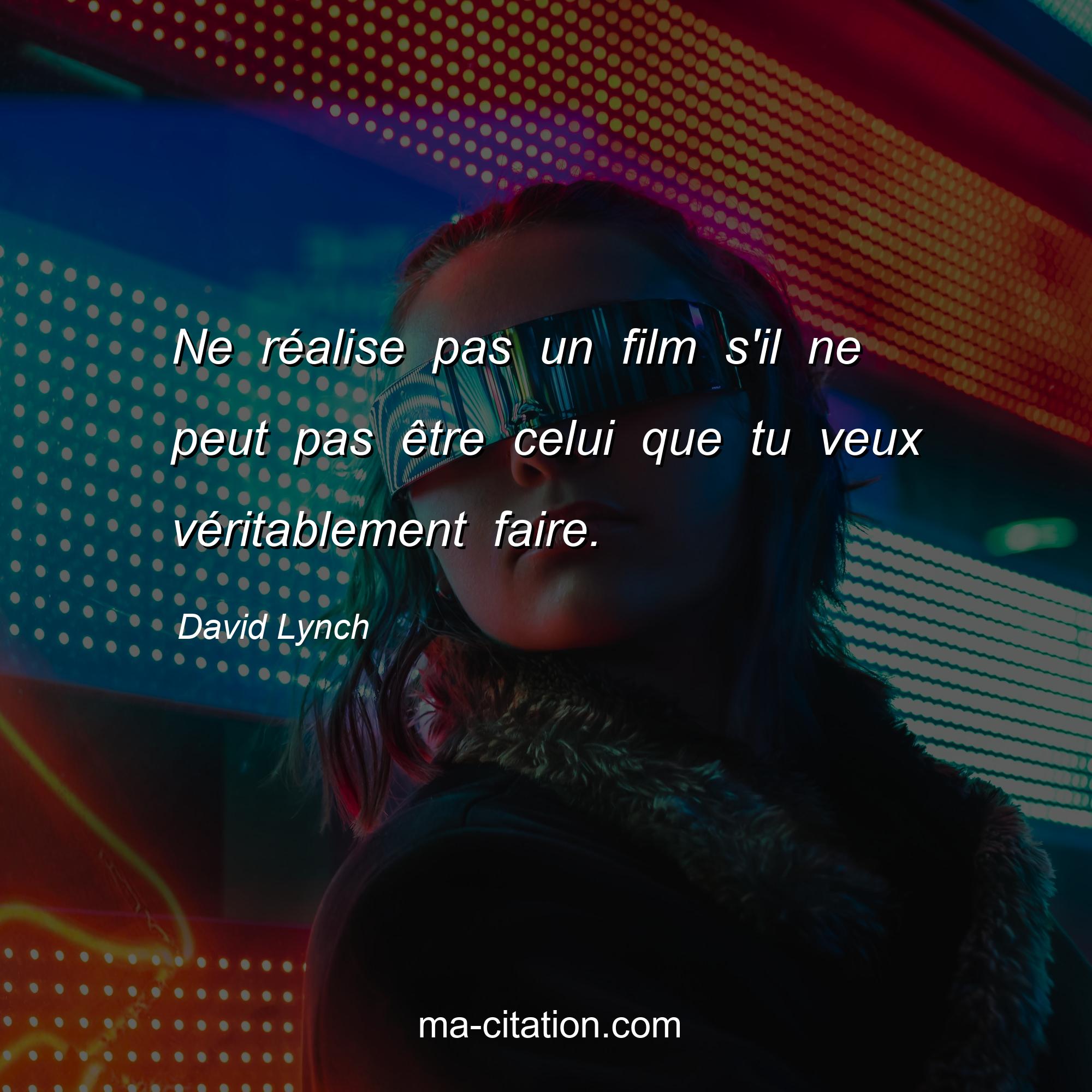 Citation sur la vie de David Lynch :Ne réalise pas un film s'il ne peut pas être celui que tu veux véritablement faire.