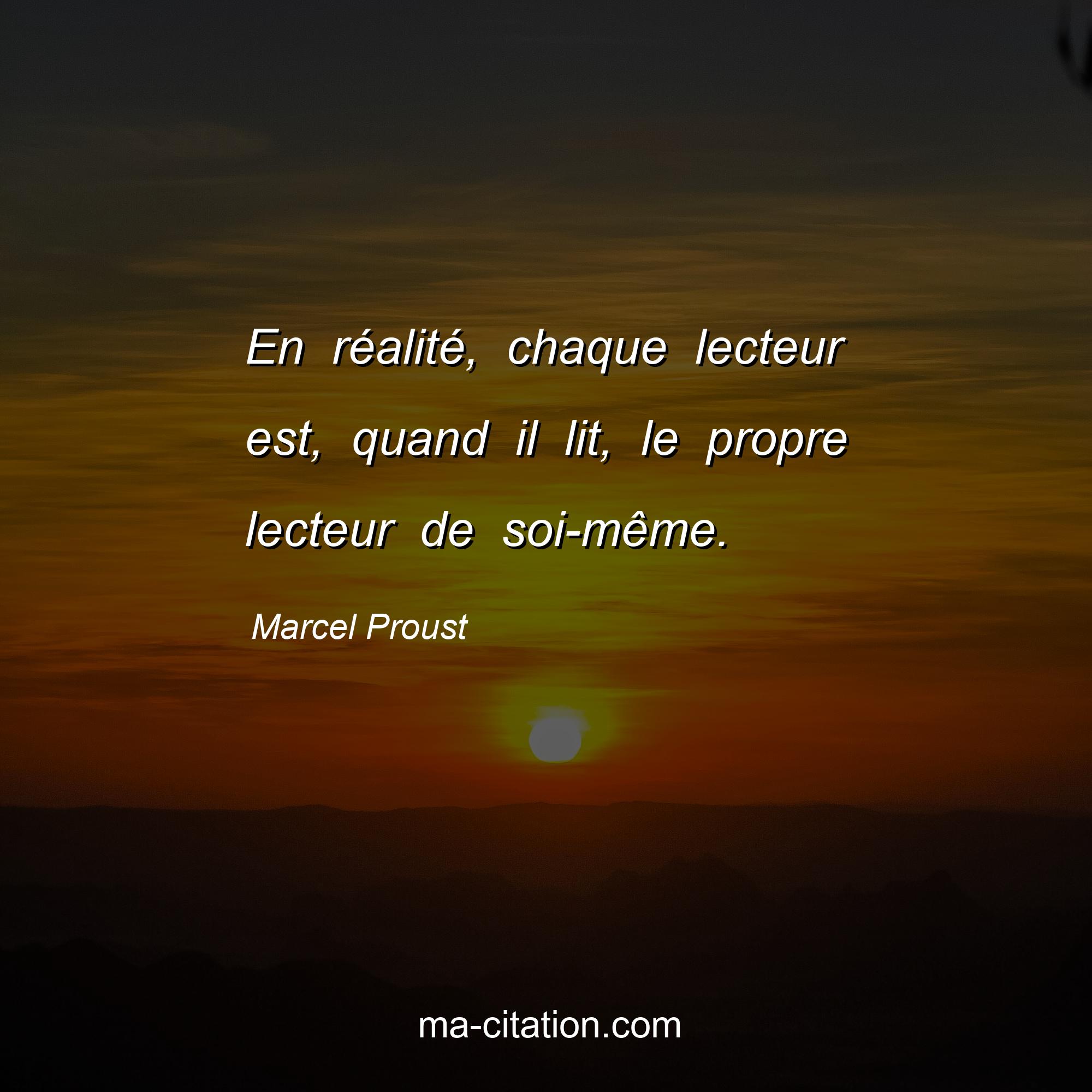 Citation sur la vie de Marcel Proust :En réalité, chaque lecteur est, quand il lit, le propre lecteur de soi-même.
