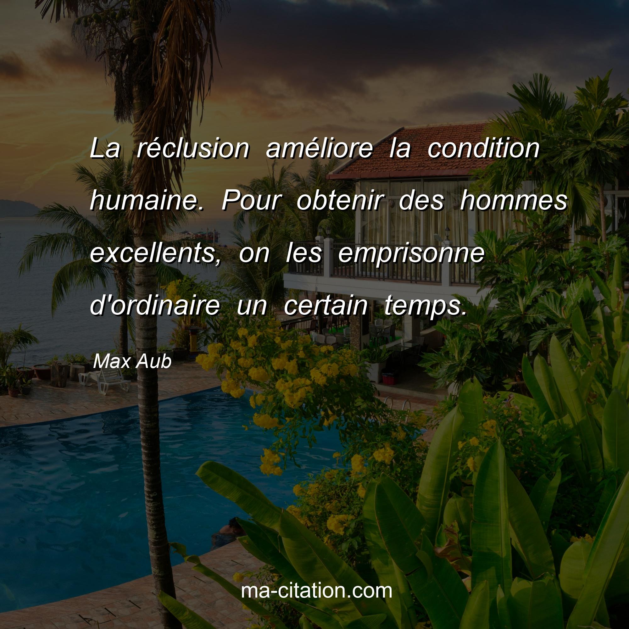 Citation sur la vie de Max Aub :La réclusion améliore la condition humaine. Pour obtenir des hommes excellents, on les emprisonne d'ordinaire un certain temps.