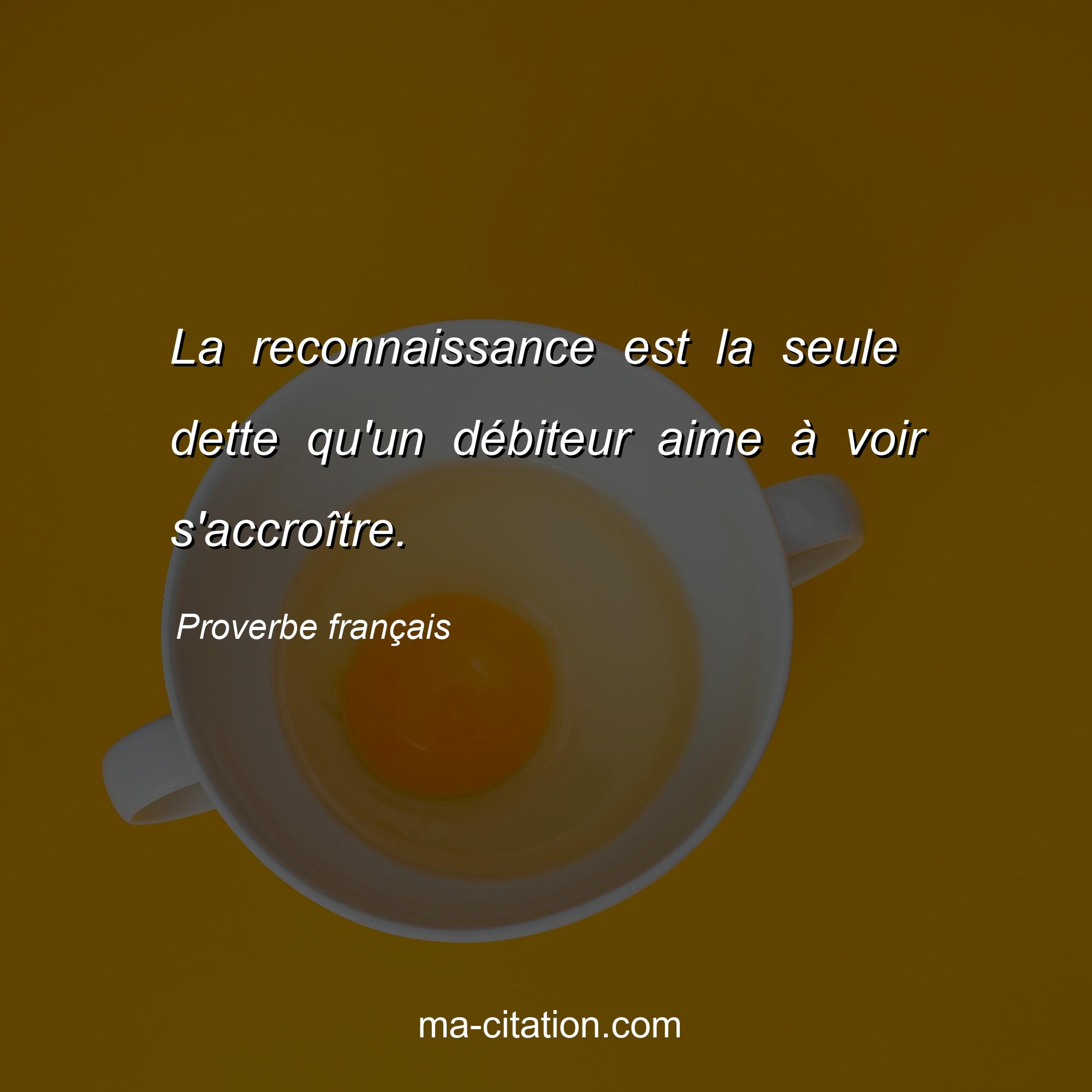 Proverbe français sur la vie :La reconnaissance est la seule dette qu'un débiteur aime à voir s'accroître.