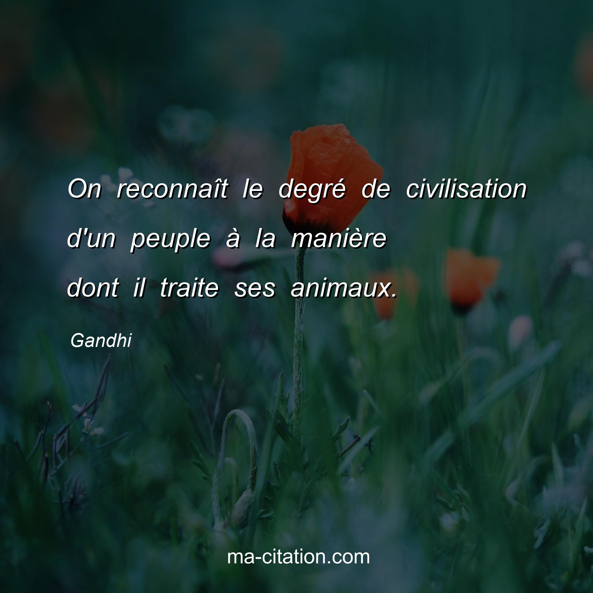 Citation sur la vie de Gandhi :On reconnaît le degré de civilisation d'un peuple à la manière dont il traite ses animaux.