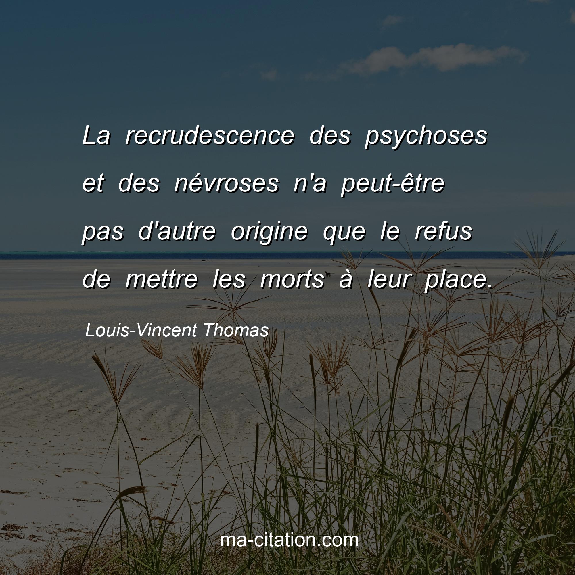 Citation sur la vie de Louis-Vincent Thomas :La recrudescence des psychoses et des névroses n'a peut-être pas d'autre origine que le refus de mettre les morts à leur place.