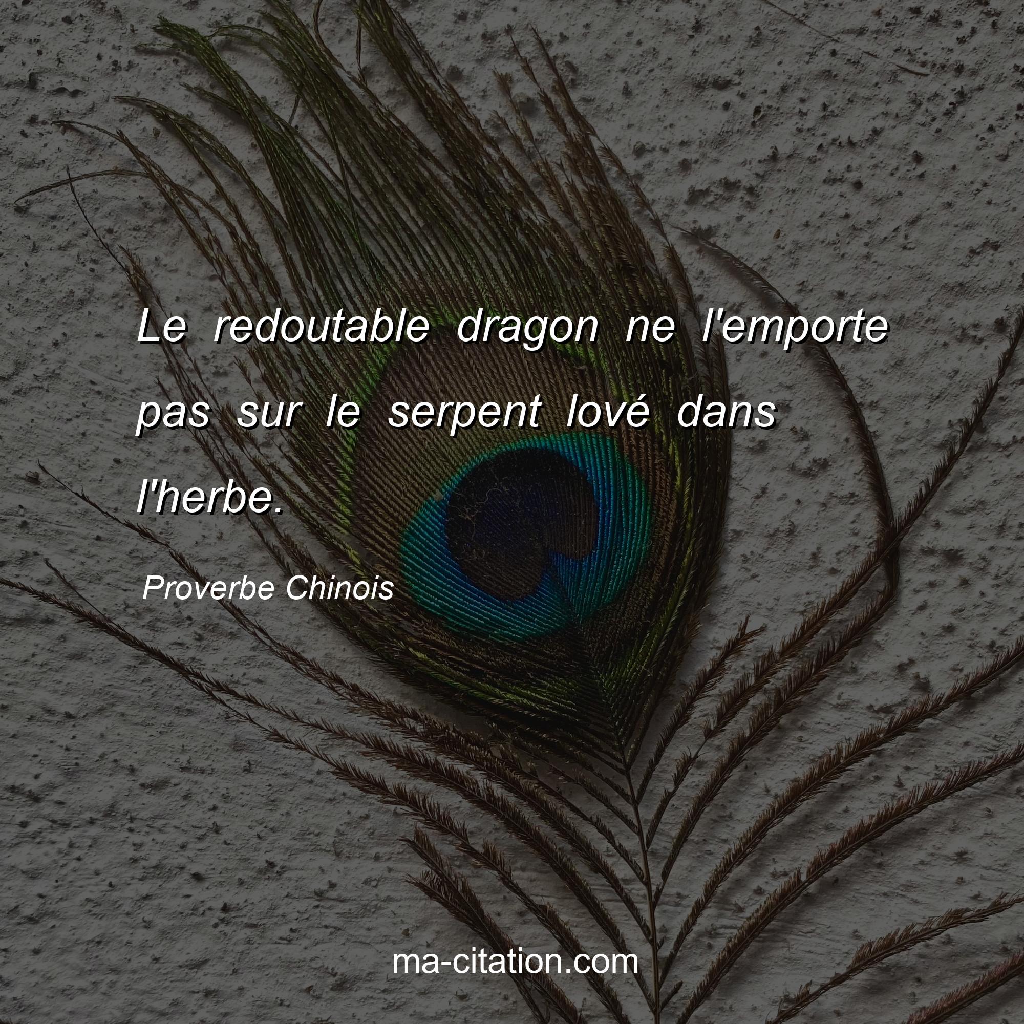 Proverbe Chinois sur la vie :Le redoutable dragon ne l'emporte pas sur le serpent lové dans l'herbe.