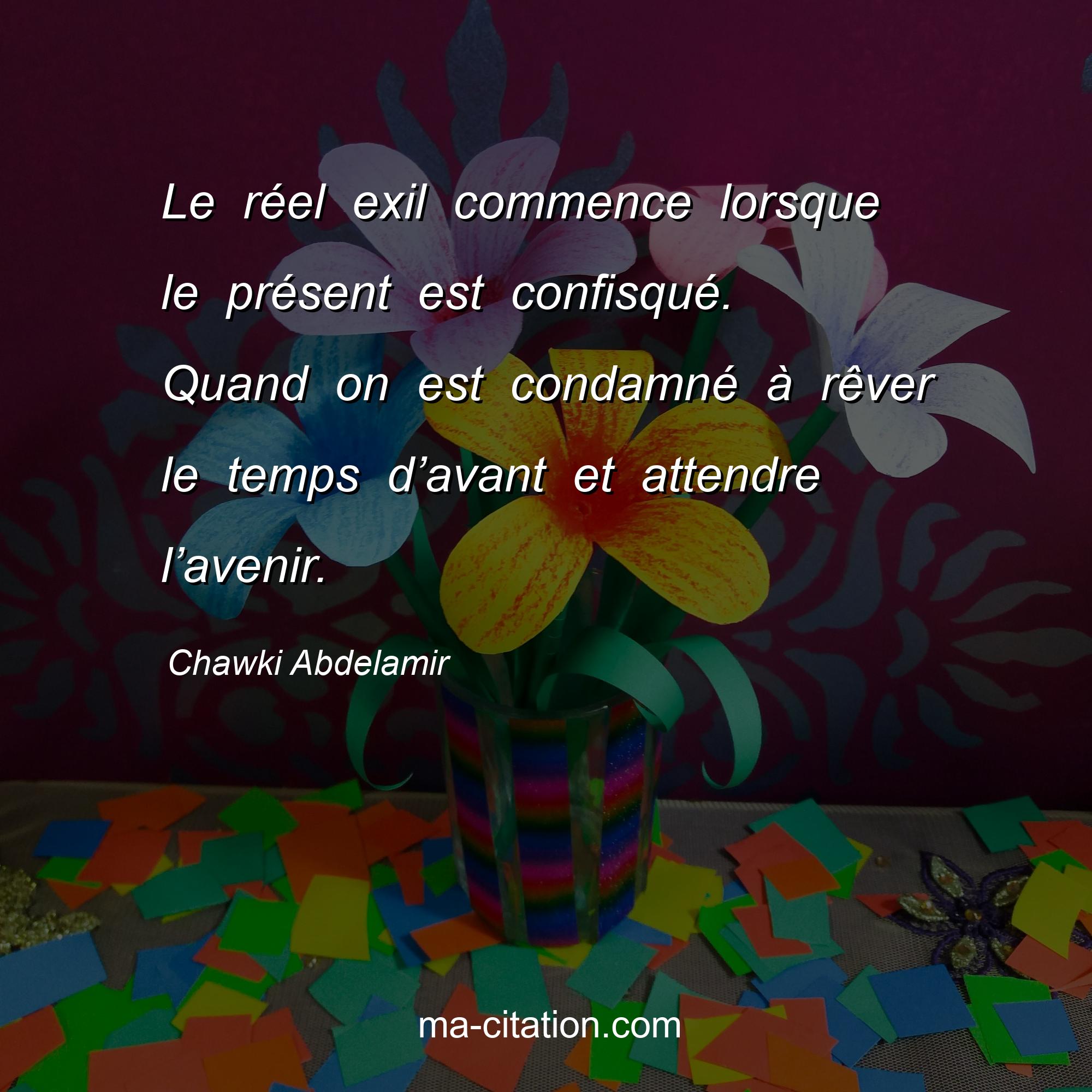 Chawki Abdelamir est l'auteur de la citation sur la vie "Le réel exil commence lorsque le présent est confisqué. Quand on est condamné à rêver le temps d’avant et attendre l’avenir.".