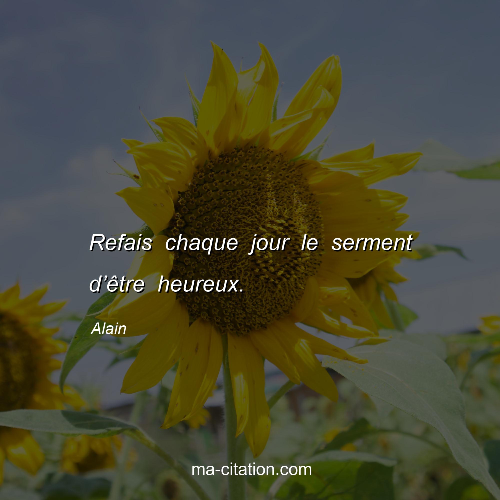 Citation sur la vie d'Alain :Refais chaque jour le serment d’être heureux.
