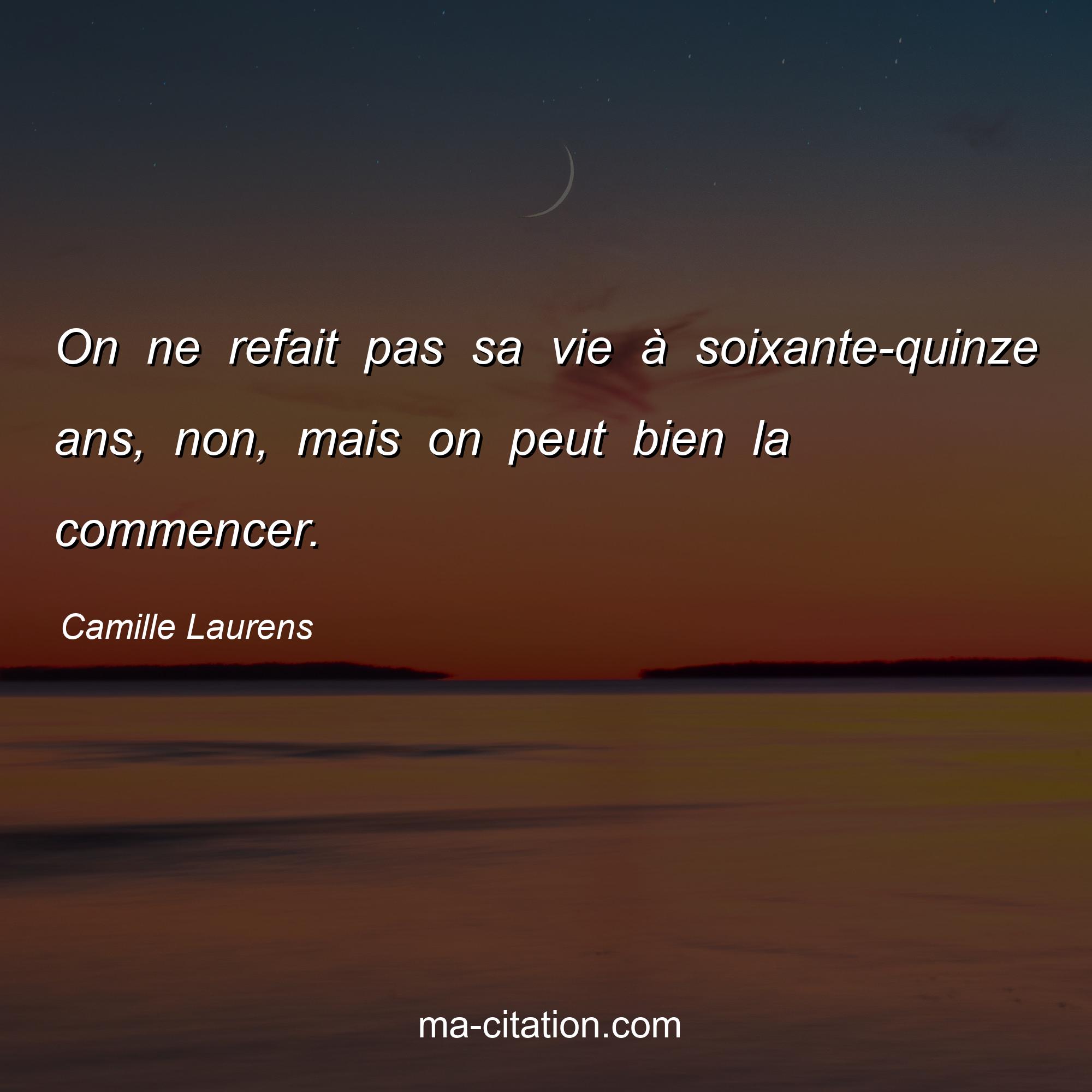 Camille Laurens est l'auteur de la citation sur la vie "On ne refait pas sa vie à soixante-quinze ans, non, mais on peut bien la commencer.".