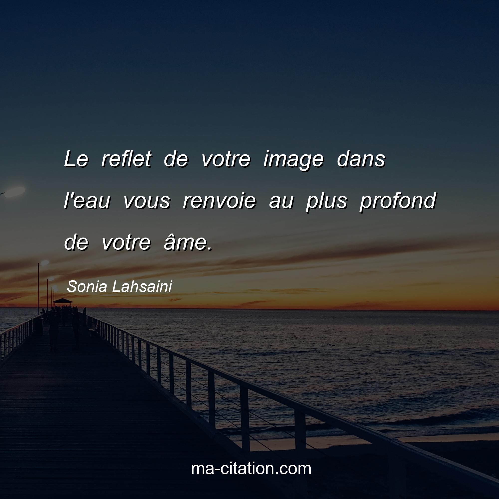 Citation sur la vie de Sonia Lahsaini :Le reflet de votre image dans l'eau vous renvoie au plus profond de votre âme.