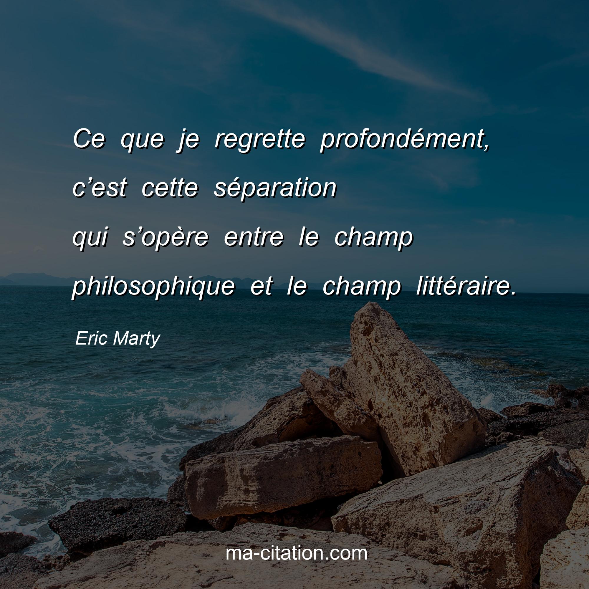 Eric Marty est l'auteur de la citation sur la vie "Ce que je regrette profondément, c’est cette séparation qui s’opère entre le champ philosophique et le champ littéraire.".