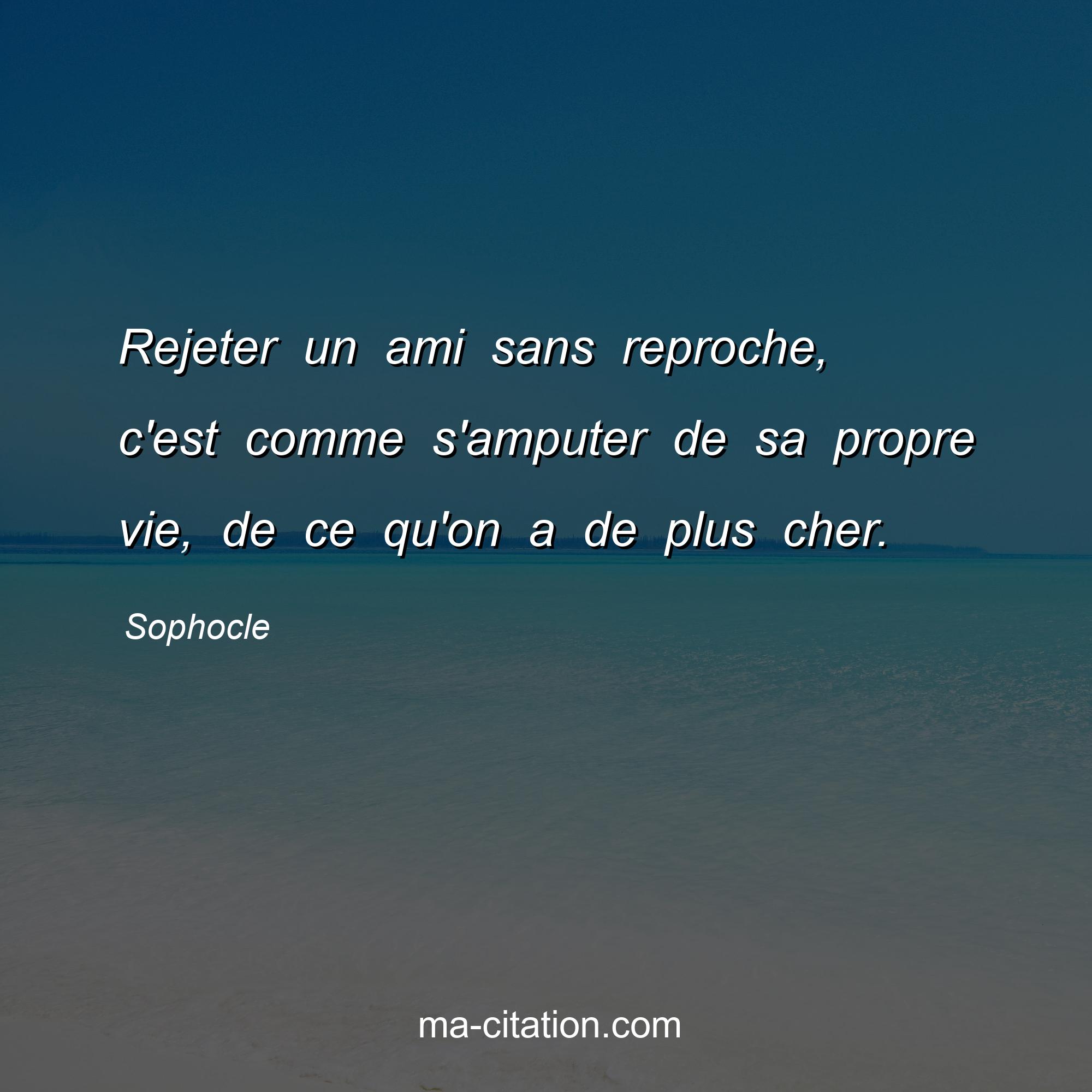 Sophocle est l'auteur de la citation sur la vie "Rejeter un ami sans reproche, c'est comme s'amputer de sa propre vie, de ce qu'on a de plus cher.".