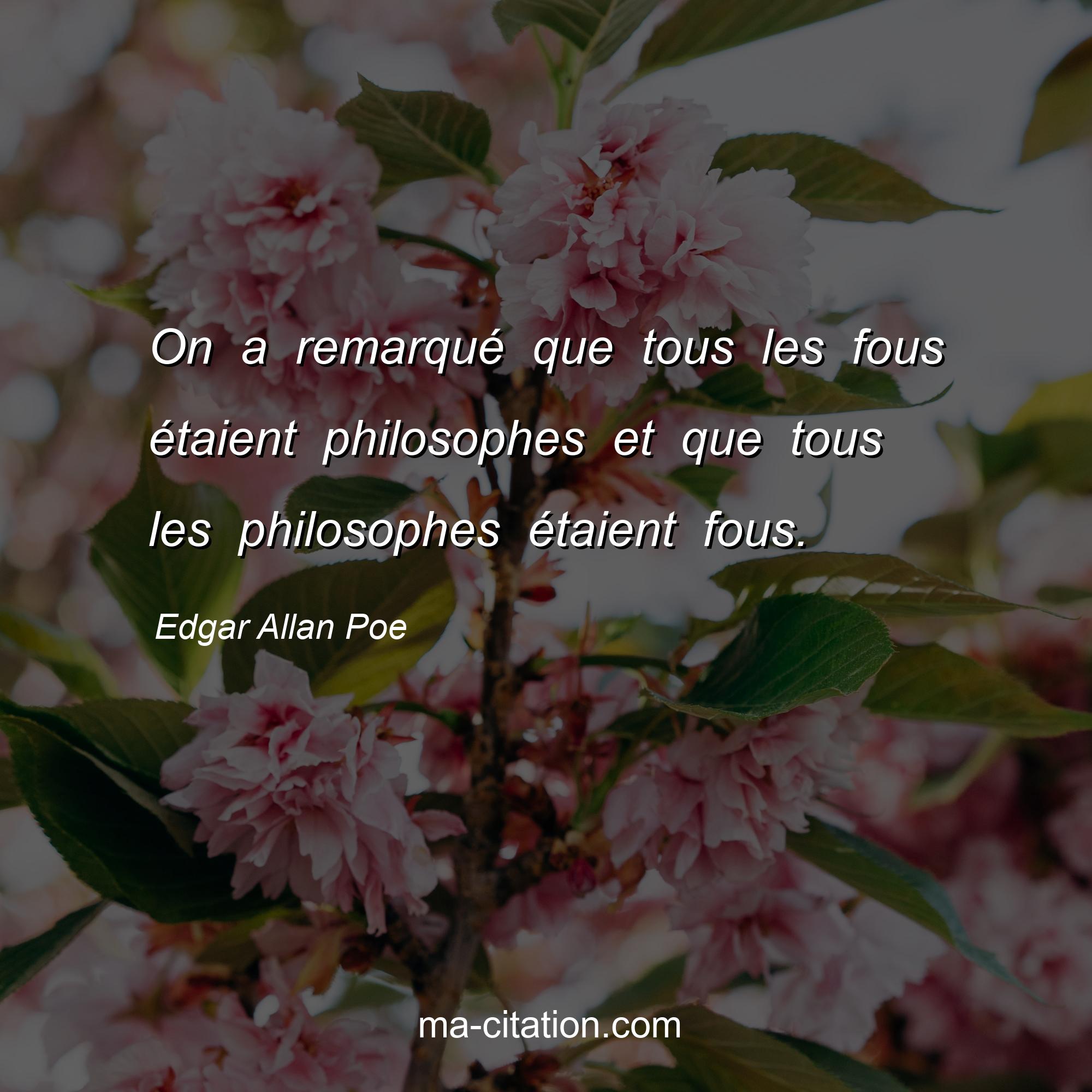 Citation sur la vie d'Edgar Allan Poe :On a remarqué que tous les fous étaient philosophes et que tous les philosophes étaient fous.