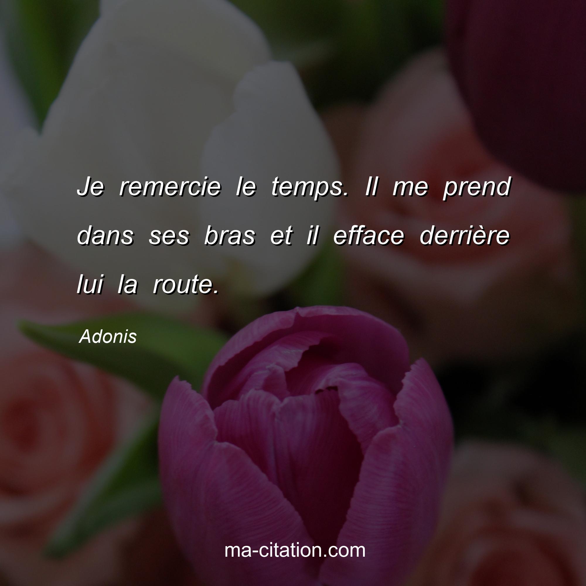 Citation sur la vie d'Adonis :Je remercie le temps. Il me prend dans ses bras et il efface derrière lui la route.