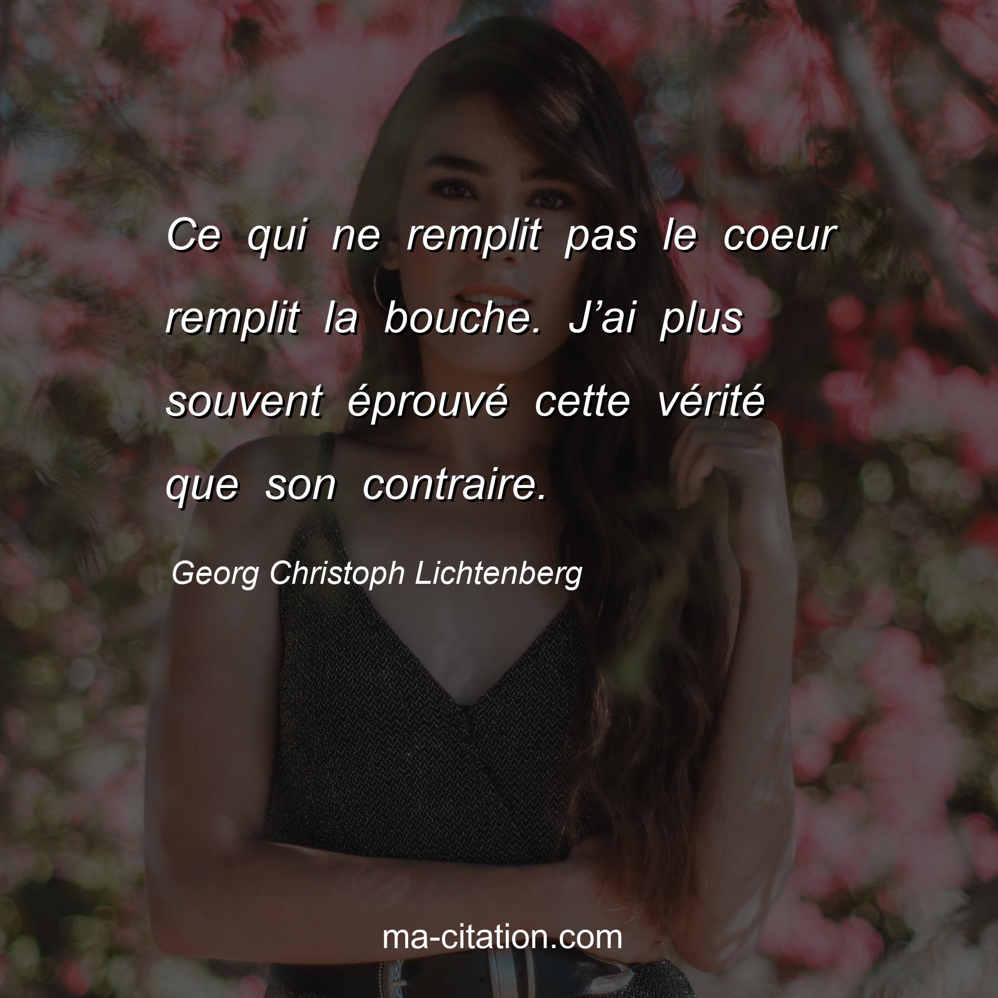 Citation sur la vie de Georg Christoph Lichtenberg :Ce qui ne remplit pas le coeur remplit la bouche. J’ai plus souvent éprouvé cette vérité que son contraire.