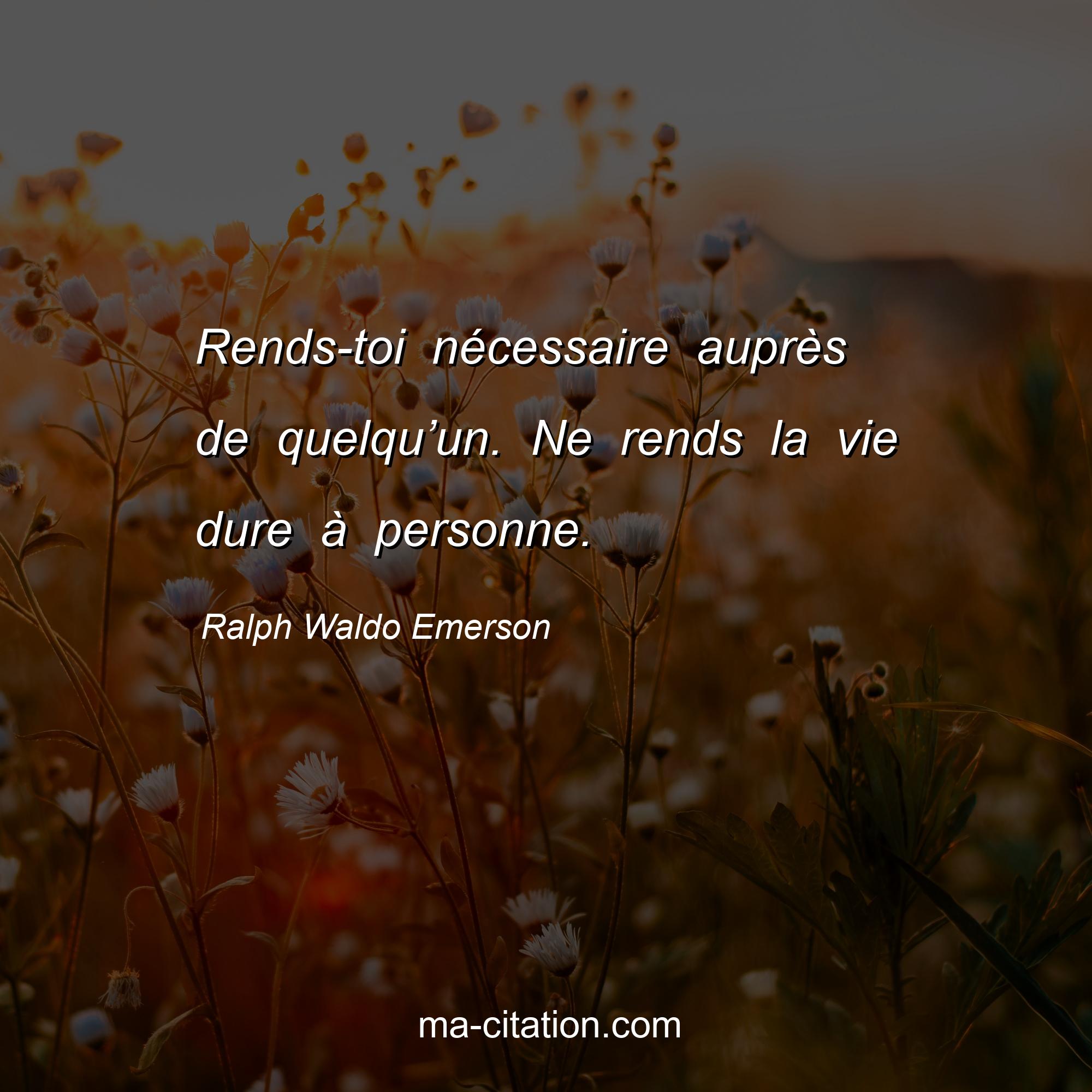 Citation sur la vie de Ralph Waldo Emerson :Rends-toi nécessaire auprès de quelqu’un. Ne rends la vie dure à personne.