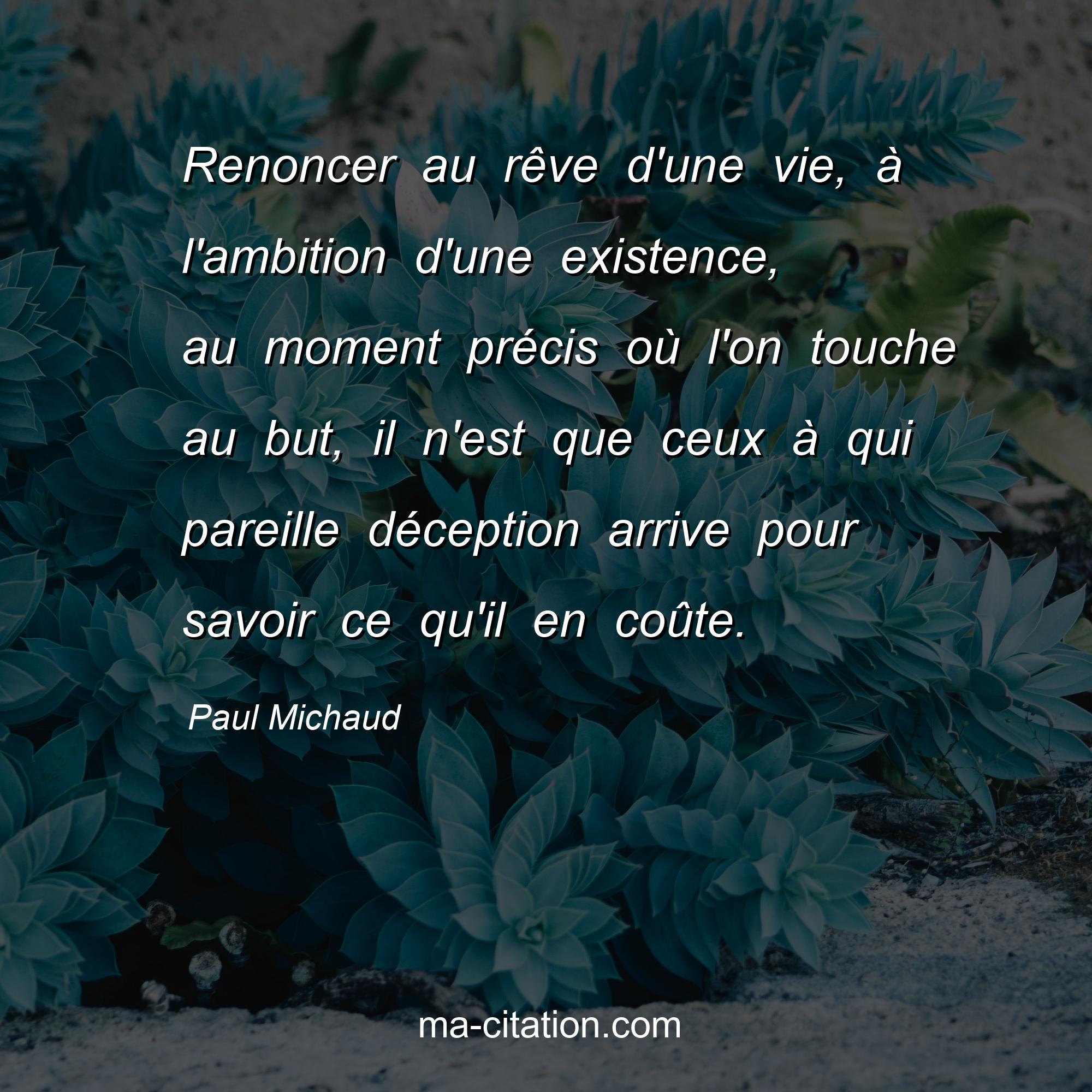 Paul Michaud est l'auteur de la citation sur la vie "Renoncer au rêve d'une vie, à l'ambition d'une existence, au moment précis où l'on touche au but, il n'est que ceux à qui pareille déception arrive pour savoir ce qu'il en coûte.".