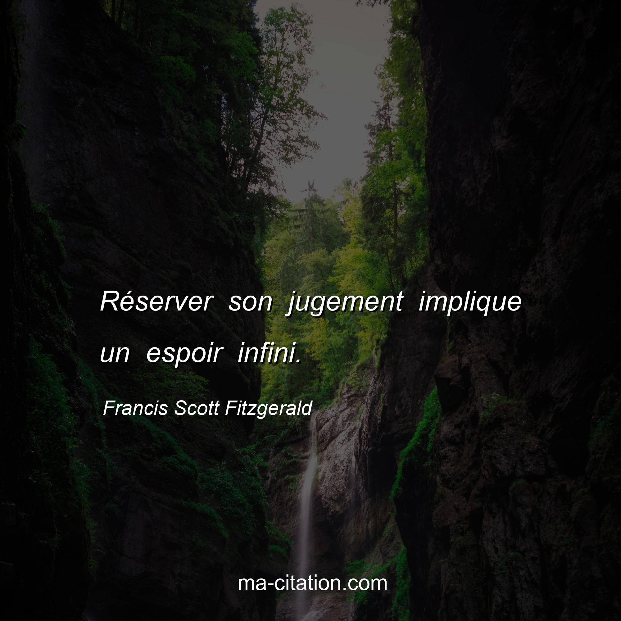 Citation sur la vie de Francis Scott Fitzgerald :Réserver son jugement implique un espoir infini.