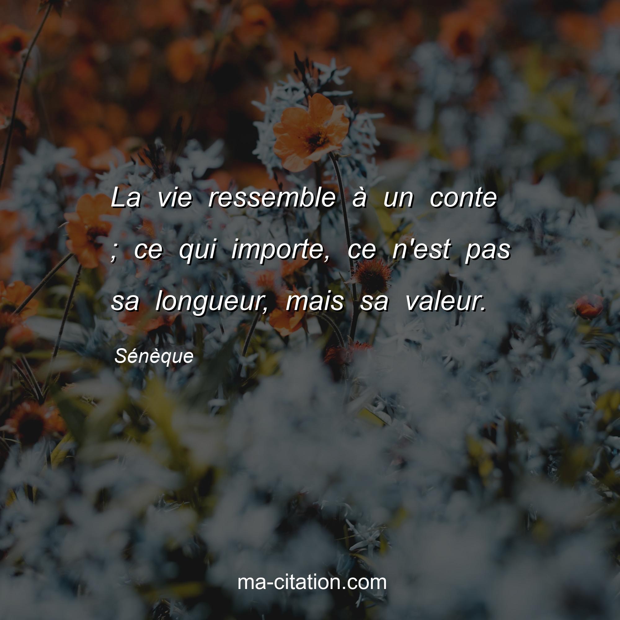 Citation sur la vie de Sénèque :La vie ressemble à un conte ; ce qui importe, ce n'est pas sa longueur, mais sa valeur.