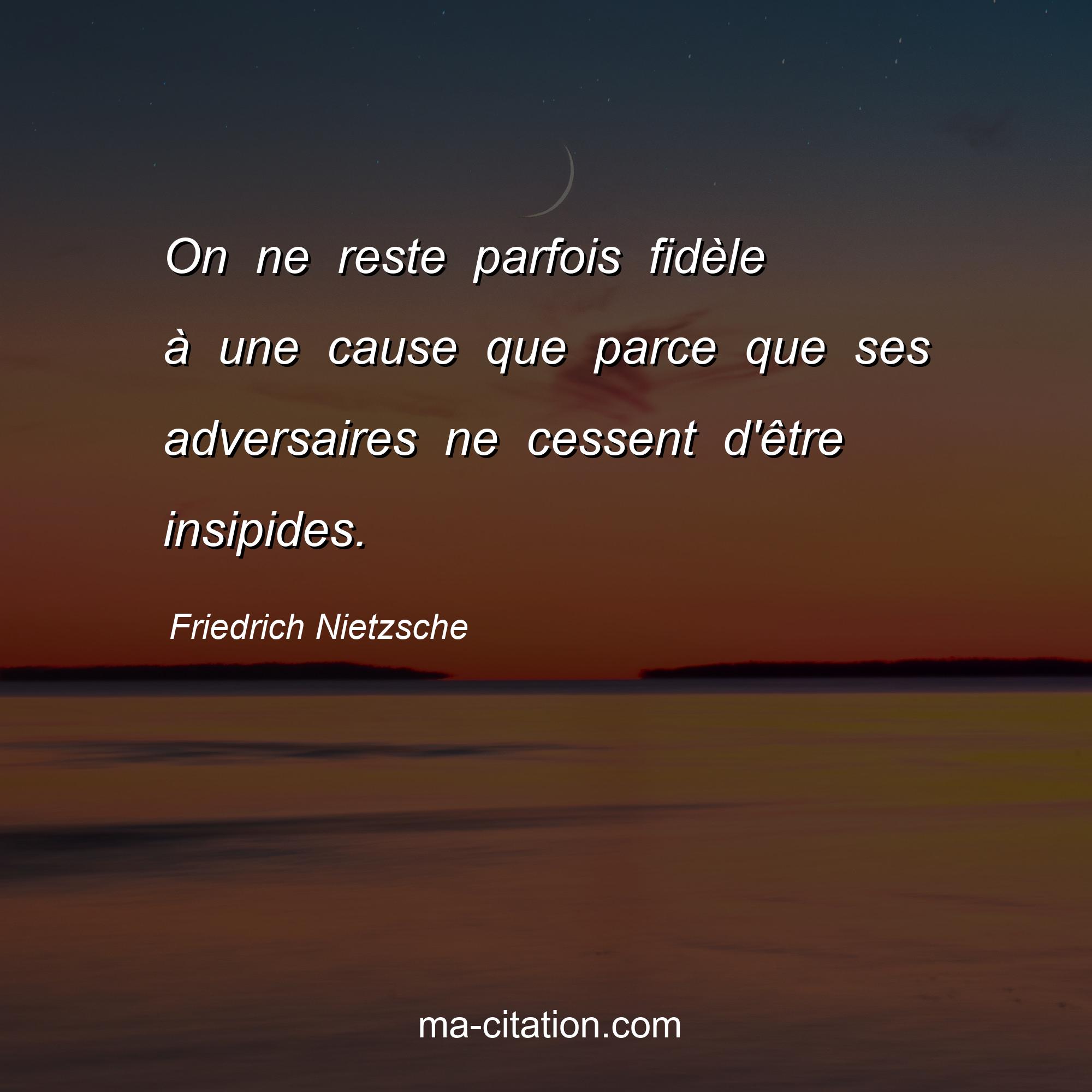 Citation sur la vie de Friedrich Nietzsche :On ne reste parfois fidèle à une cause que parce que ses adversaires ne cessent d'être insipides.