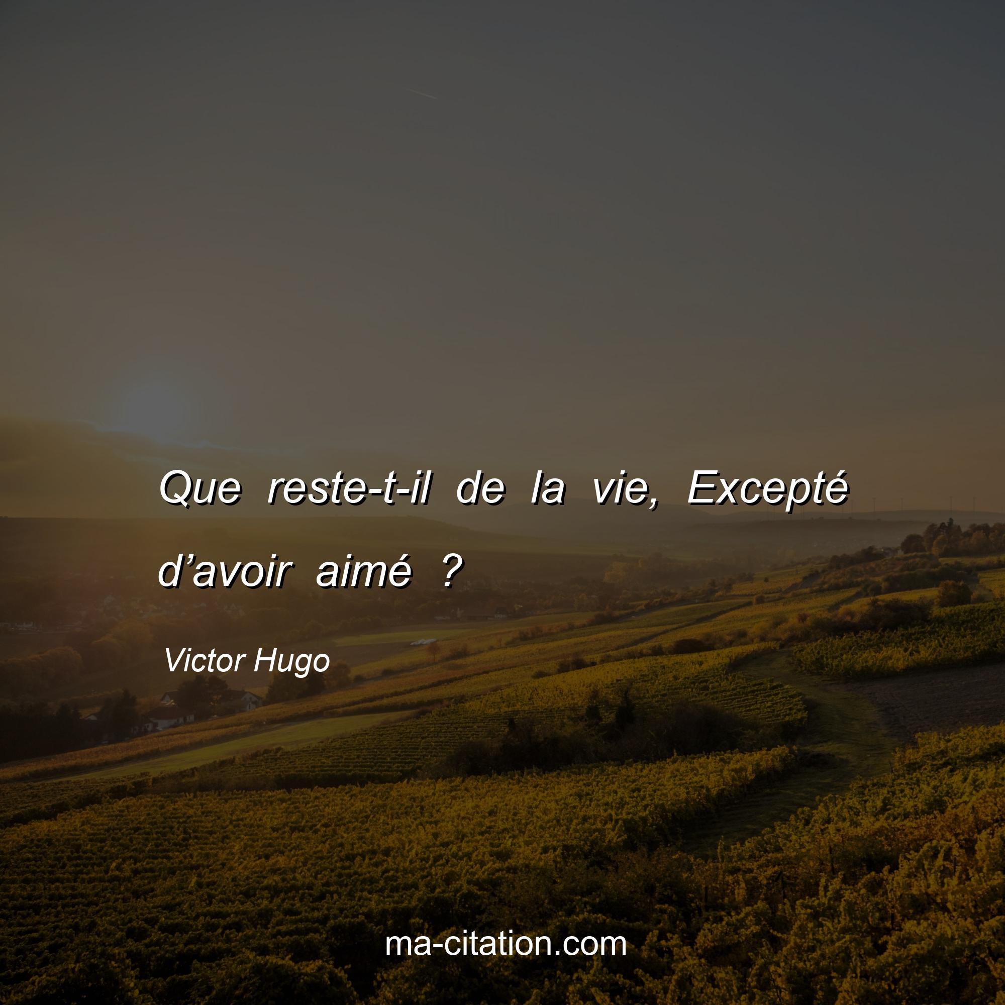 Victor Hugo est l'auteur de la citation sur la vie "Que reste-t-il de la vie, Excepté d’avoir aimé ?".