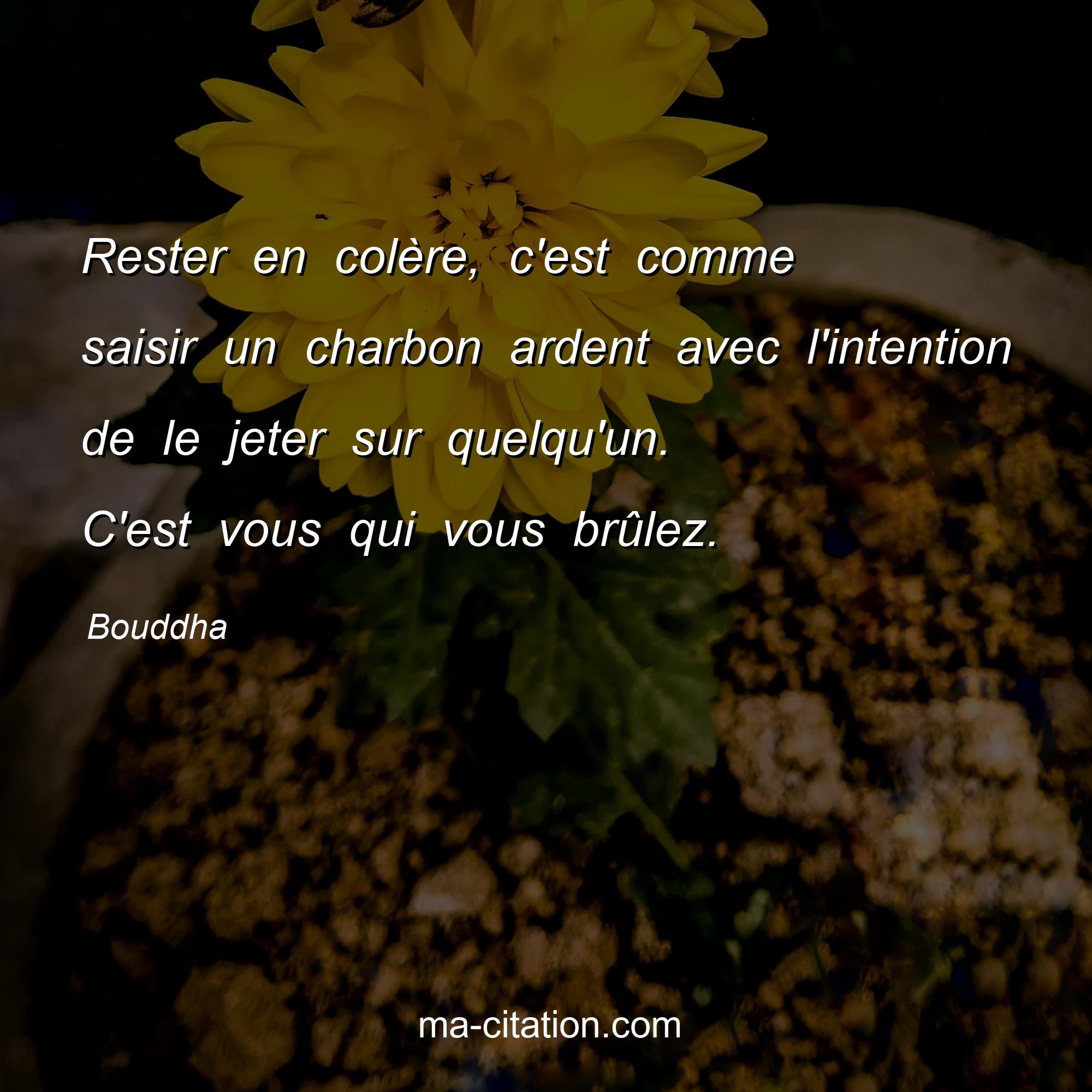 Citation sur la vie de Bouddha :Rester en colère, c'est comme saisir un charbon ardent avec l'intention de le jeter sur quelqu'un. C'est vous qui vous brûlez.