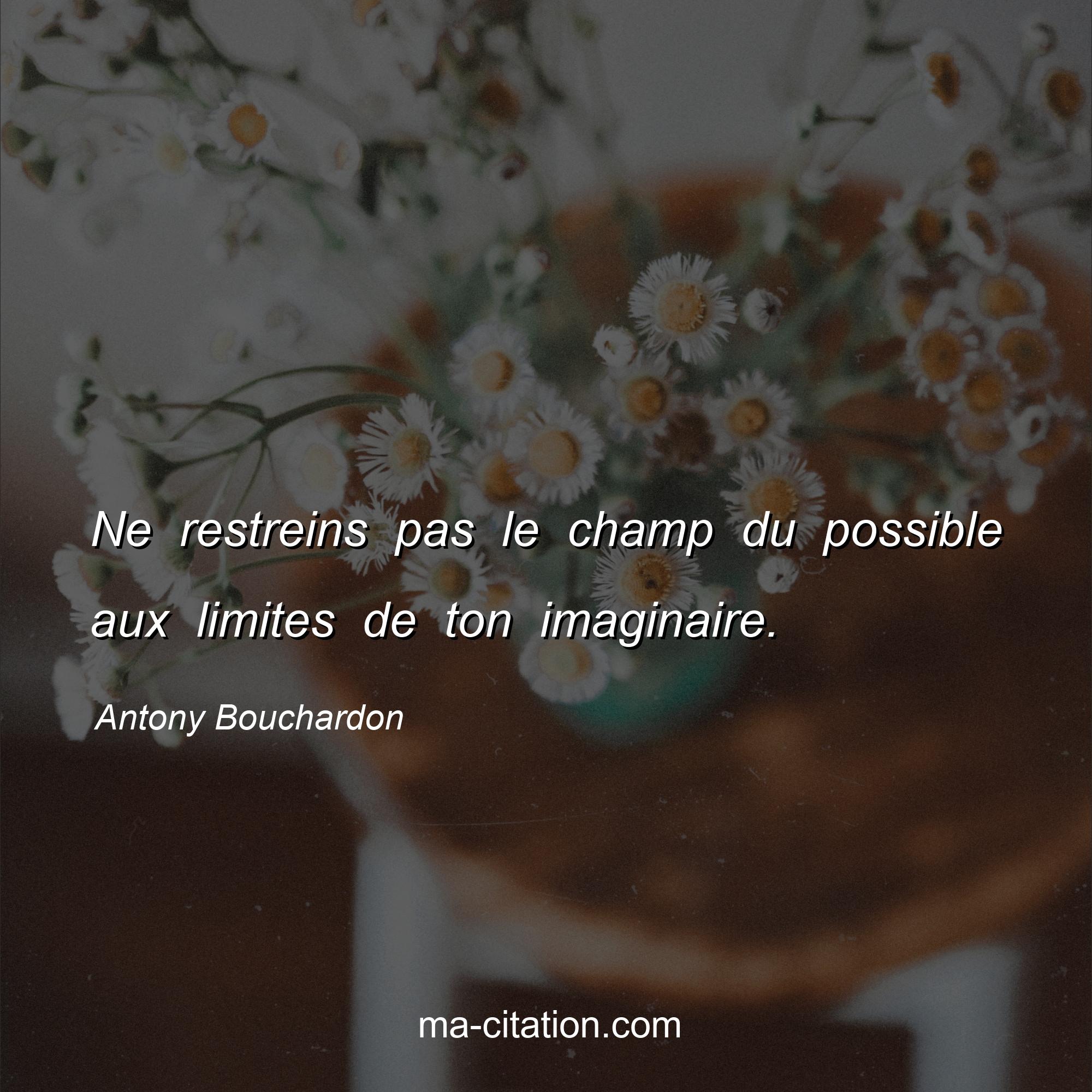Antony Bouchardon est l'auteur de la citation sur la vie "Ne restreins pas le champ du possible aux limites de ton imaginaire.".