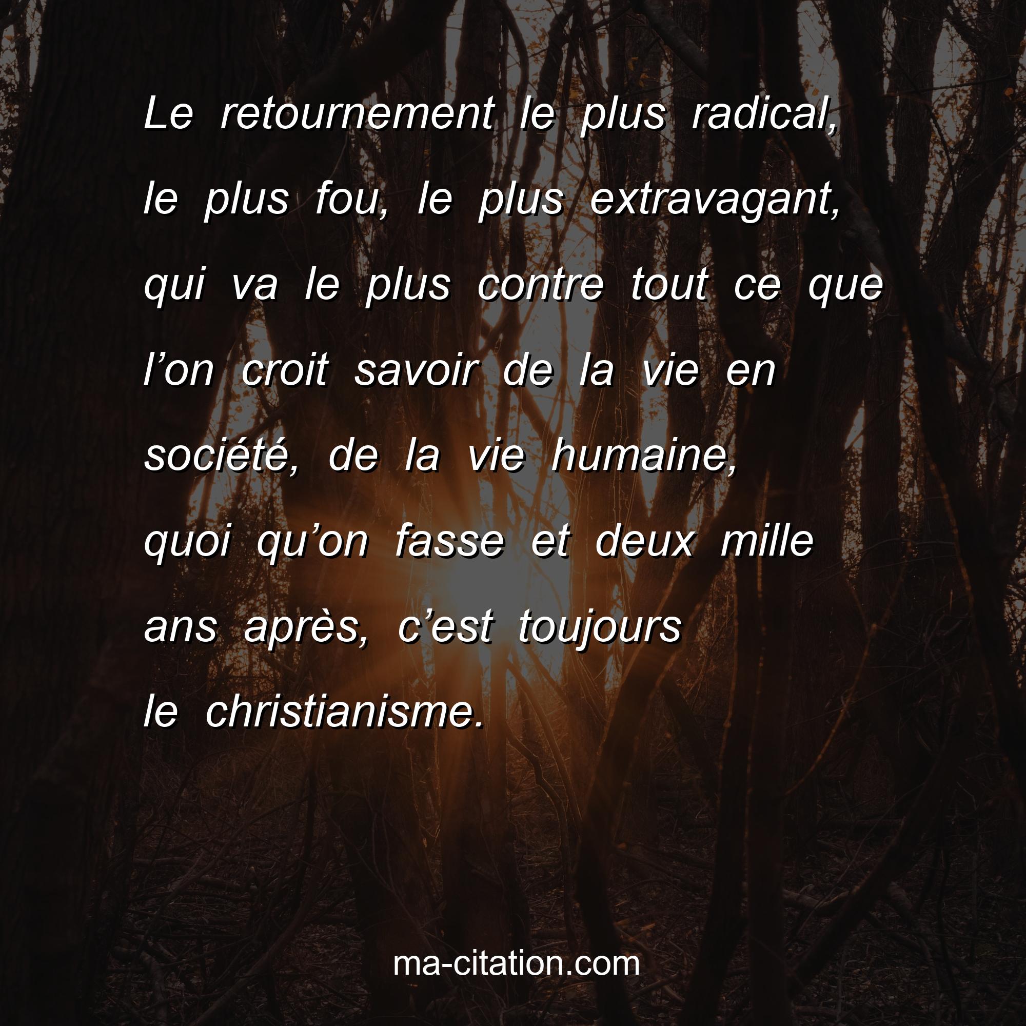 Le retournement le plus radical, le plus fou, le plus extravagant, qui va le plus contre tout ce que l’on croit savoir de la vie en société, de la vie humaine, quoi qu’on fasse et deux mille ans après, c’est toujours le christianisme.