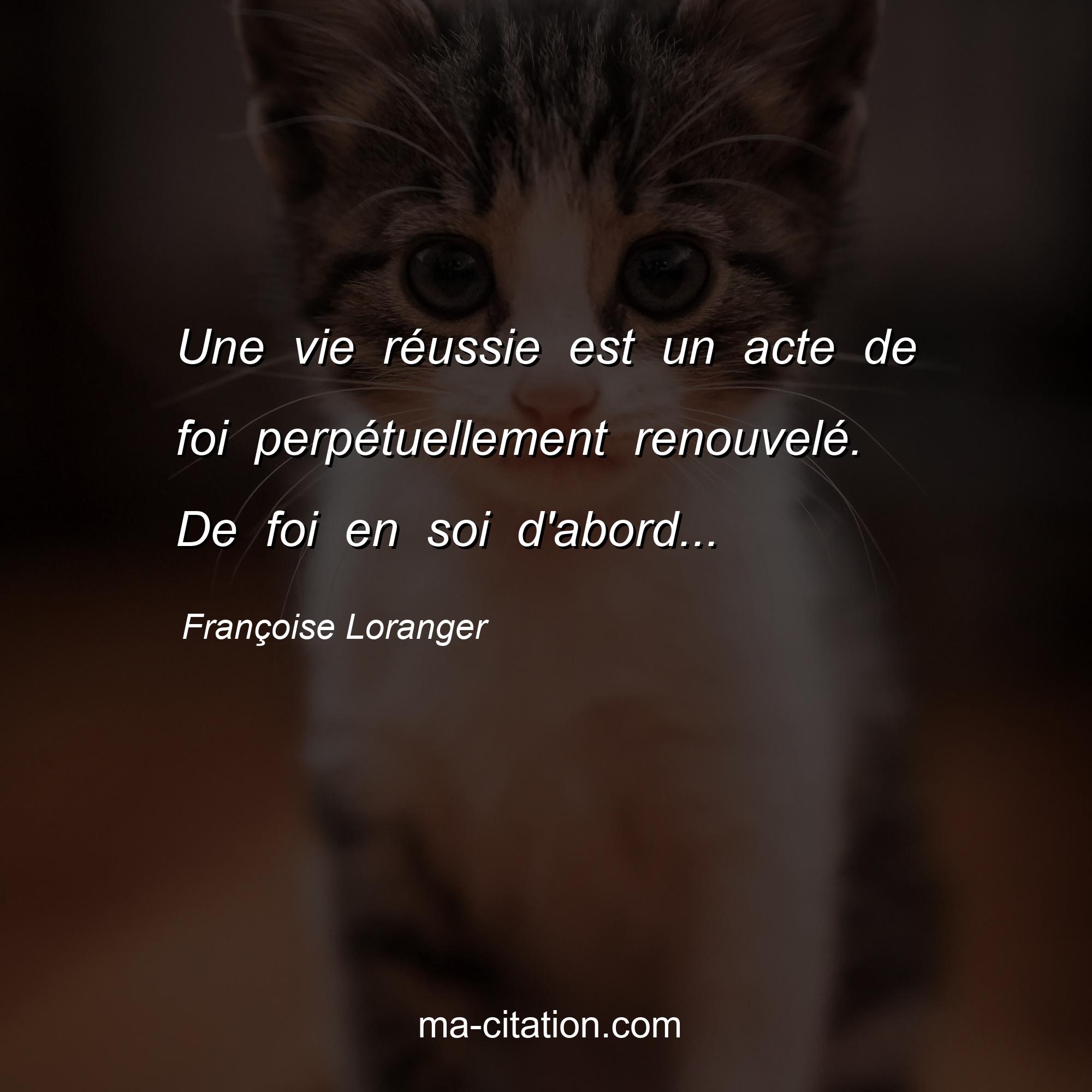 Citation sur la vie de Françoise Loranger :Une vie réussie est un acte de foi perpétuellement renouvelé. De foi en soi d'abord...