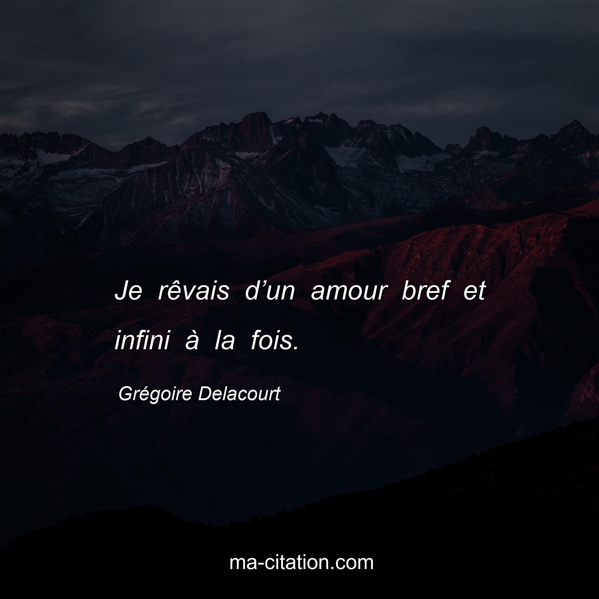 Citation sur la vie de Grégoire Delacourt :Je rêvais d’un amour bref et infini à la fois.