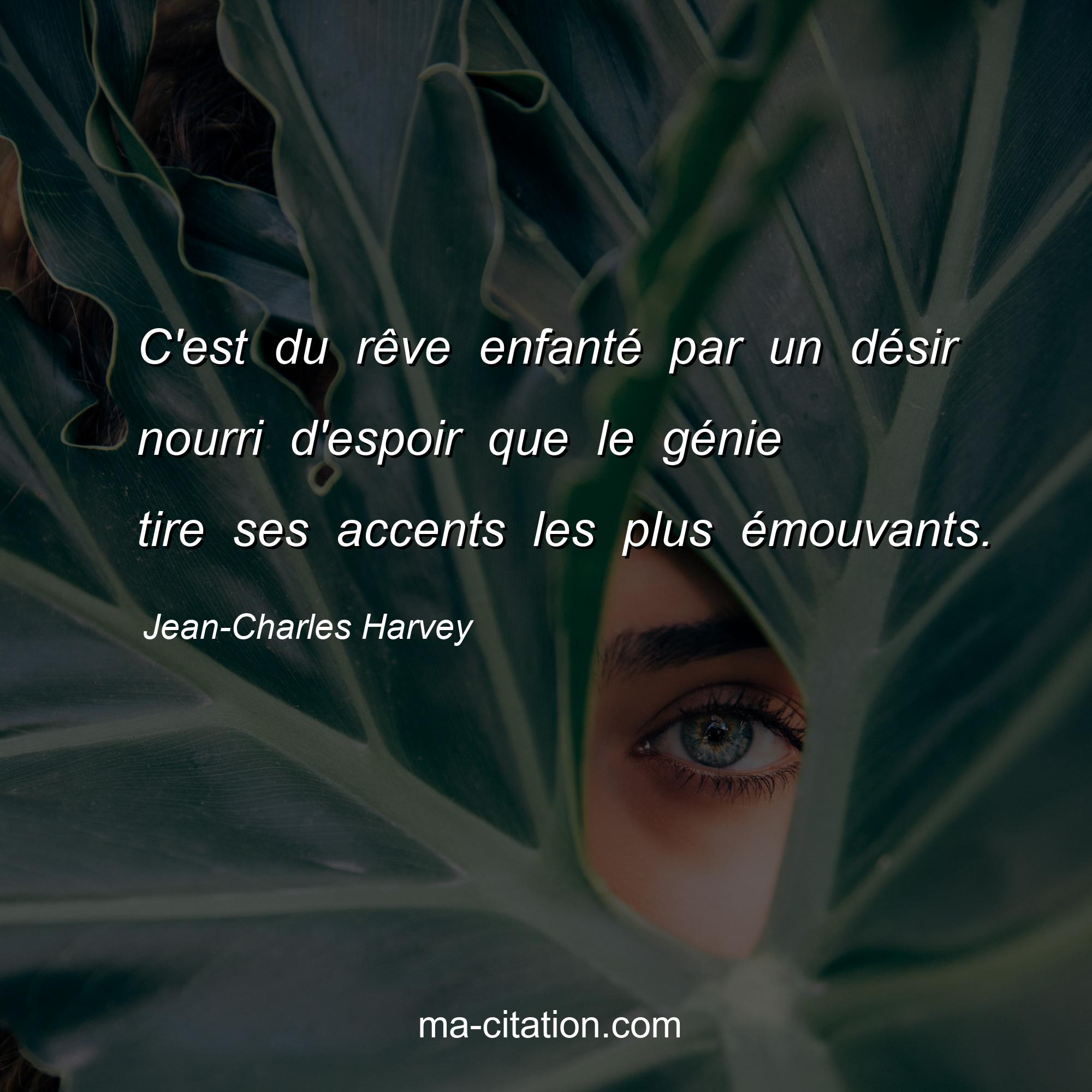 Citation sur la vie de Jean-Charles Harvey :C'est du rêve enfanté par un désir nourri d'espoir que le génie tire ses accents les plus émouvants.