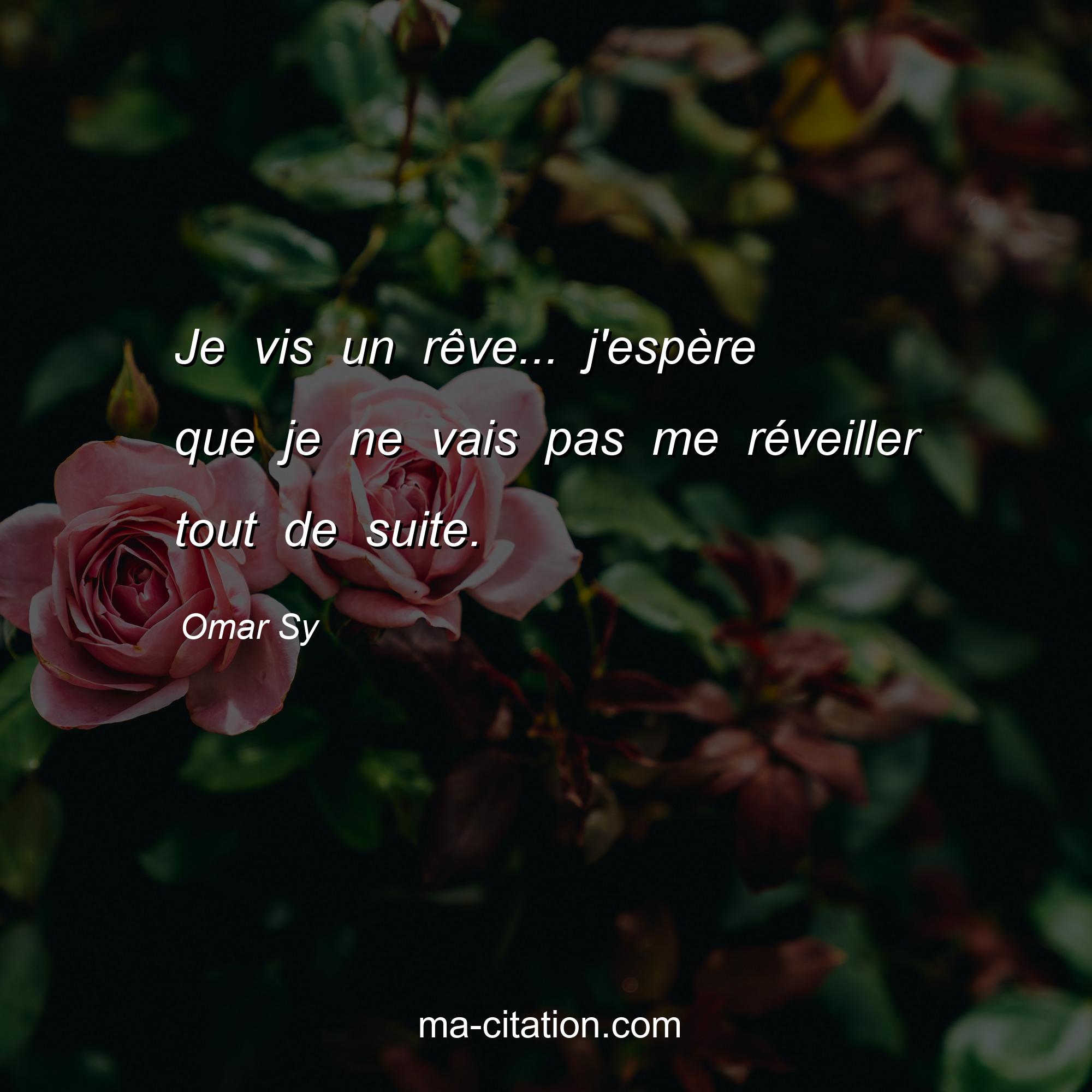 Citation sur la vie d'Omar Sy :Je vis un rêve... j'espère que je ne vais pas me réveiller tout de suite.