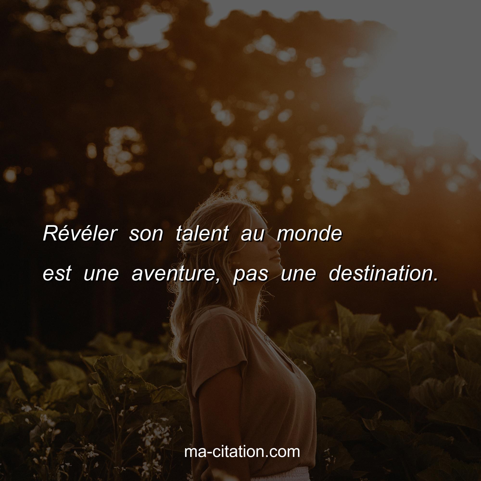 Citation sur la vie :Révéler son talent au monde est une aventure, pas une destination.