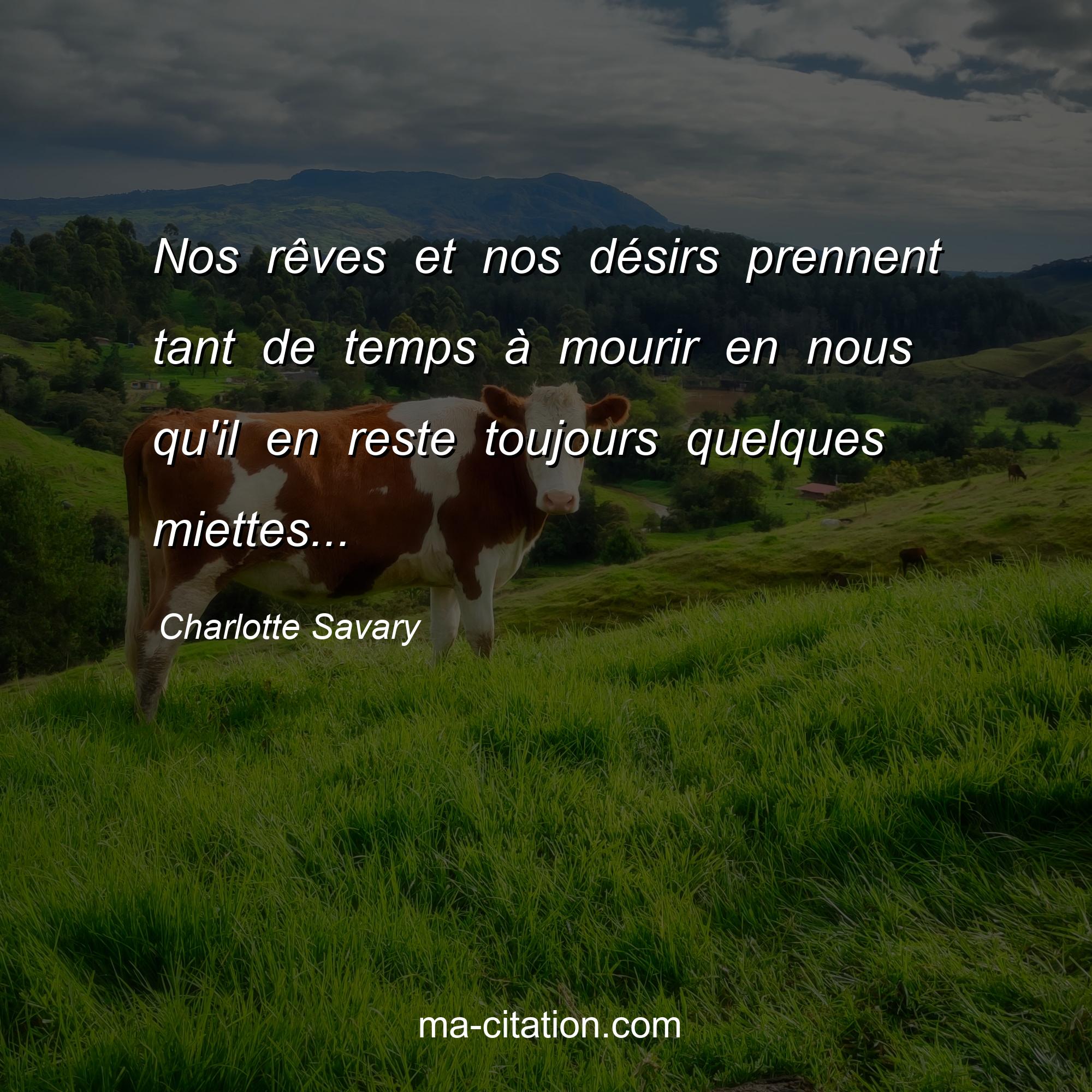 Citation sur la vie de Charlotte Savary :Nos rêves et nos désirs prennent tant de temps à mourir en nous qu'il en reste toujours quelques miettes...