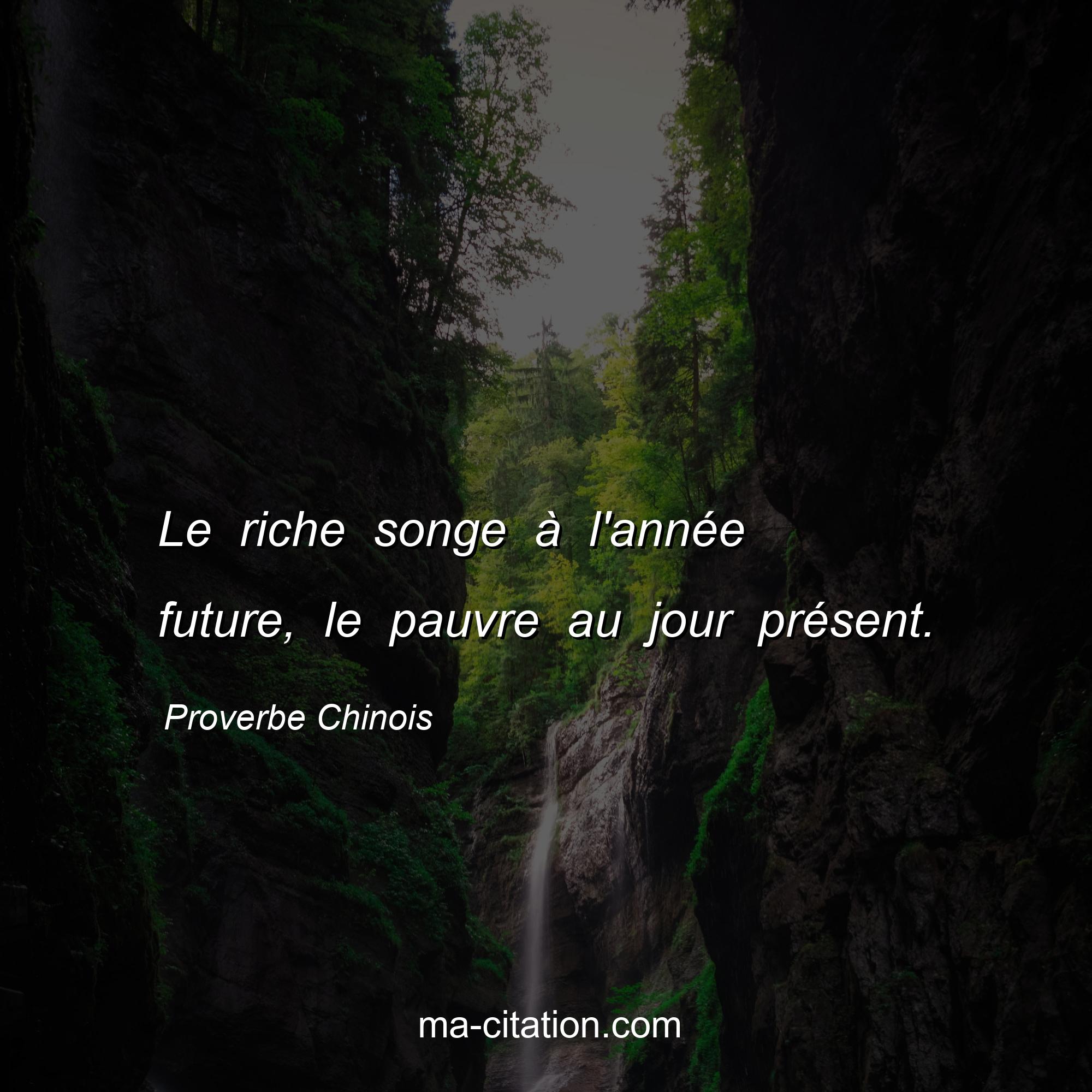 Proverbe Chinois sur la vie :Le riche songe à l'année future, le pauvre au jour présent.