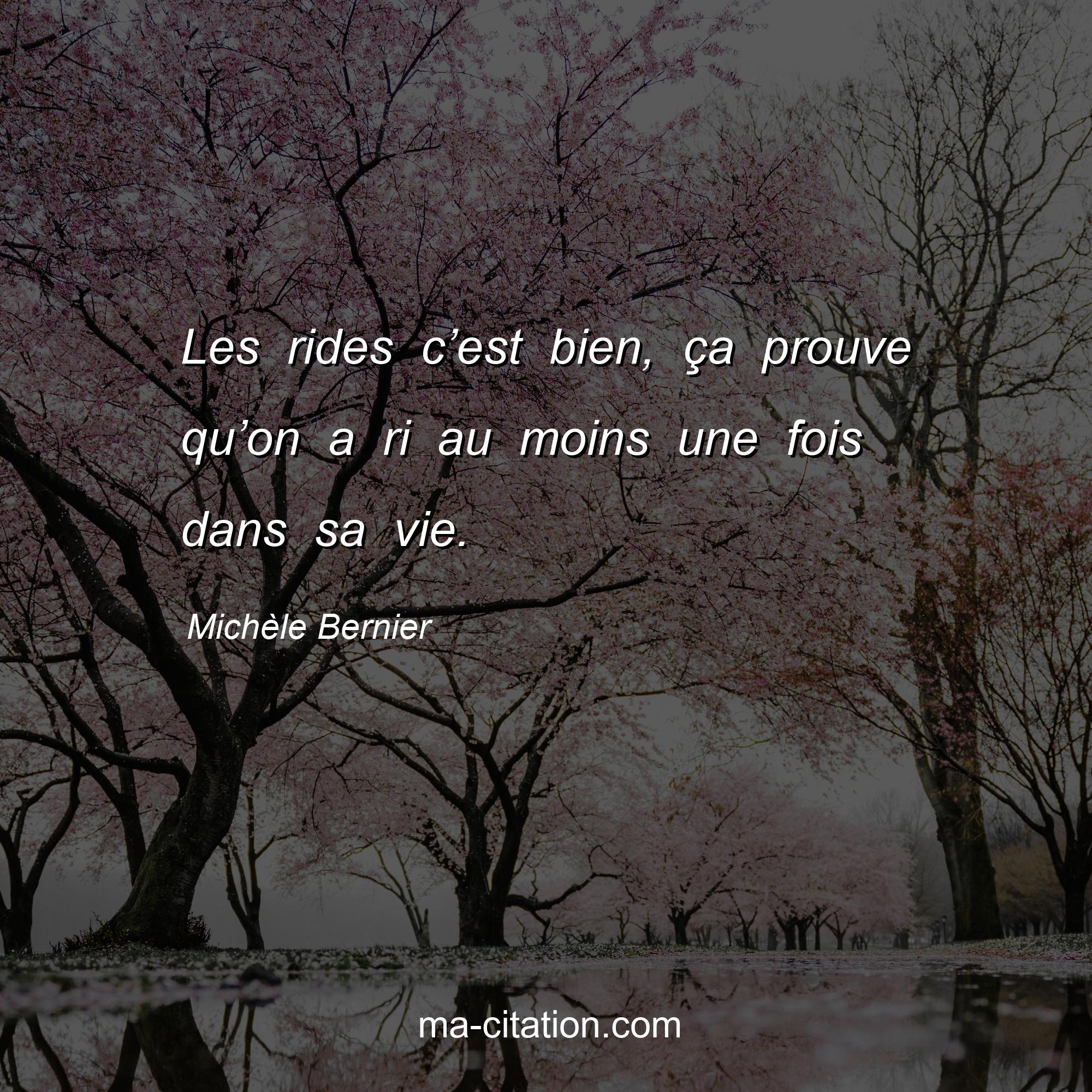 Citation sur la vie de Michèle Bernier :Les rides c’est bien, ça prouve qu’on a ri au moins une fois dans sa vie.