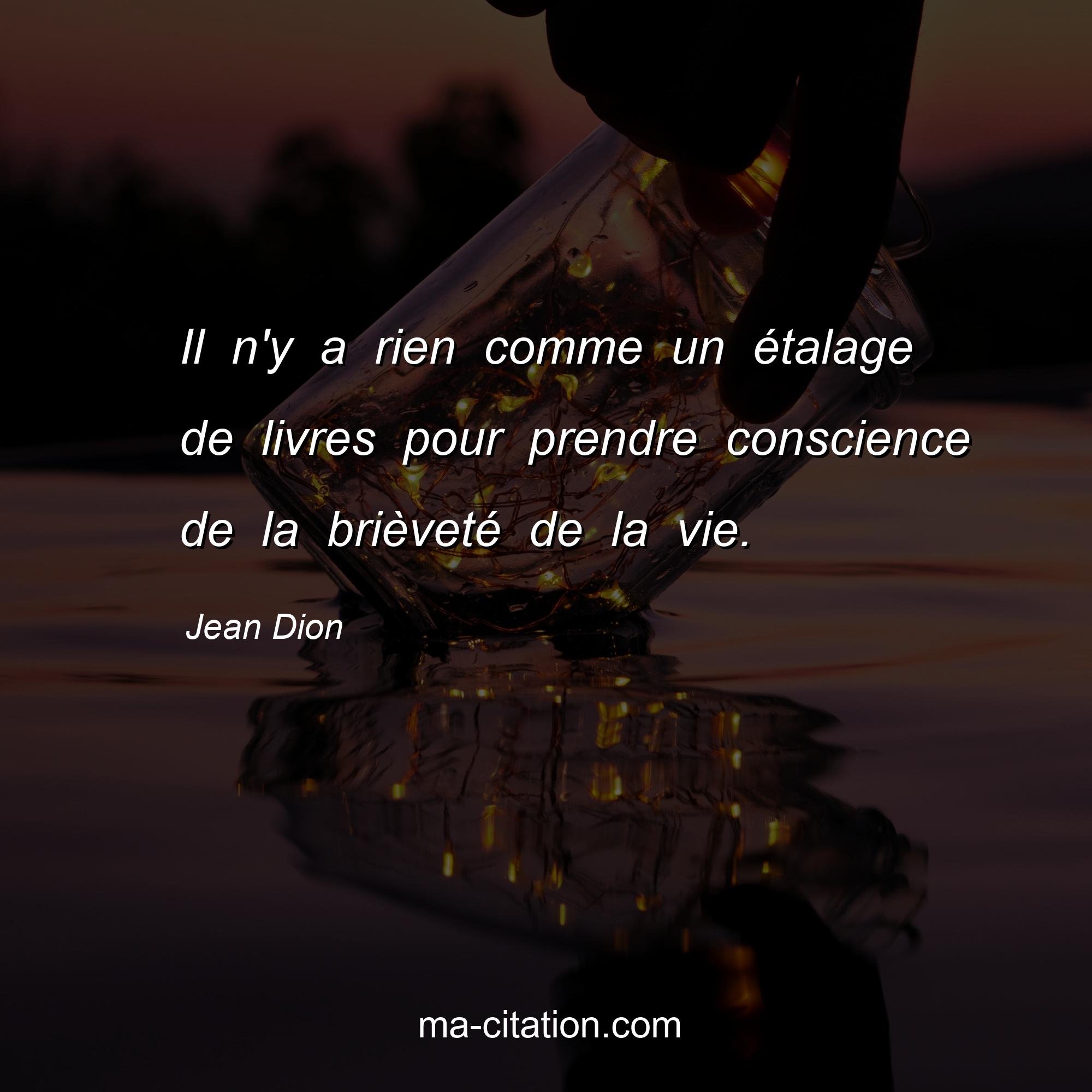 Jean Dion est l'auteur de la citation sur la vie "Il n'y a rien comme un étalage de livres pour prendre conscience de la brièveté de la vie.".