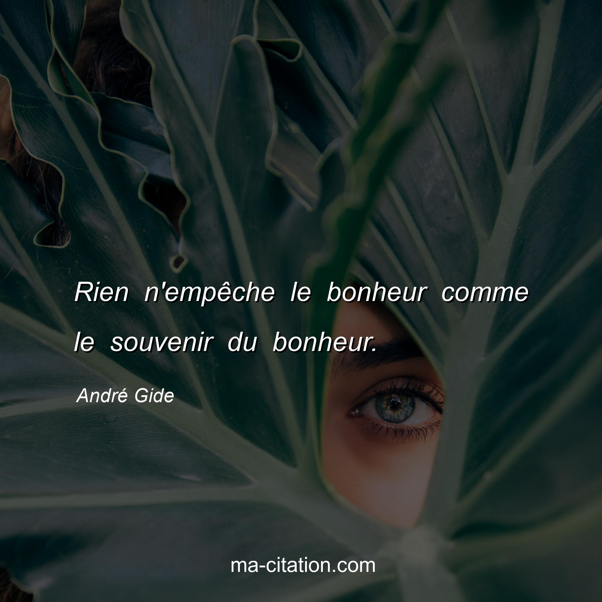 André Gide est l'auteur de la citation sur la vie "Rien n'empêche le bonheur comme le souvenir du bonheur.".